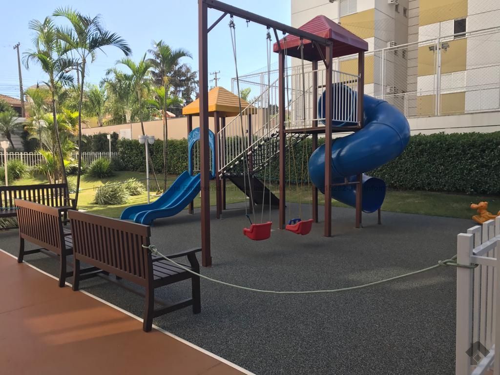 Excelente apartamento contendo uma sala para dois ambientes, cozinha com armários, lavabo, duas suítes com a/e, wc das suítes com box em blindex e chuveiros, área de serviço e sacada com churrasqueira. Área de lazer ampla com playground, piscina, academia, quadra de esportes, área gourmet e salão de festas. Contém uma vaga de garagem.