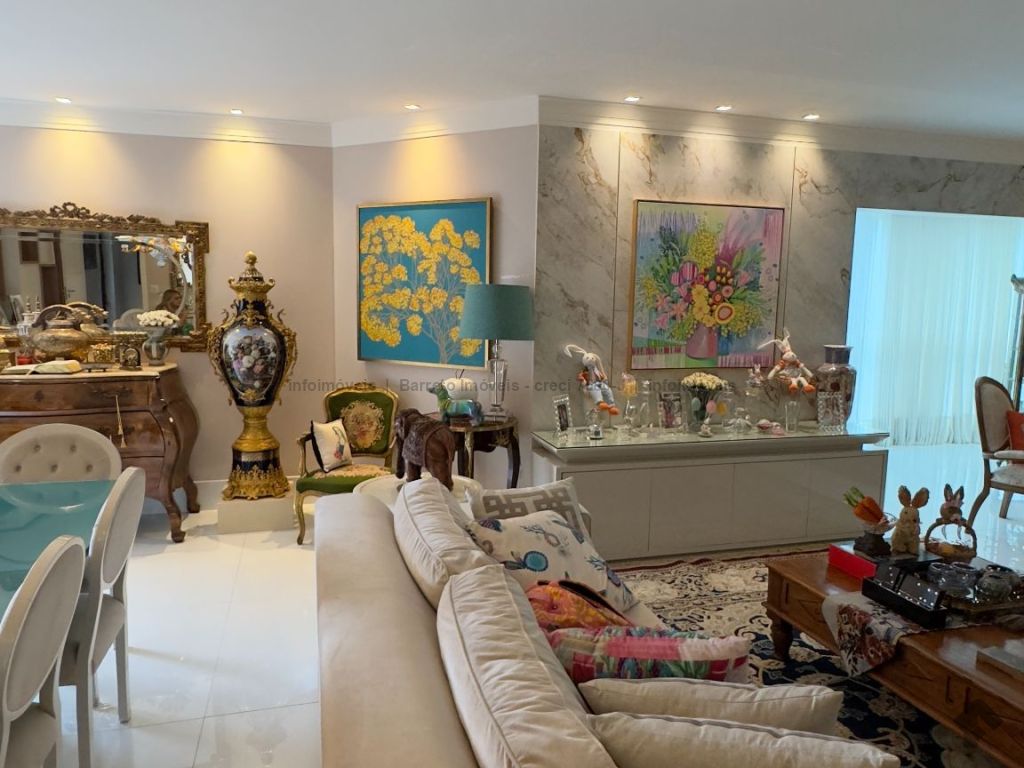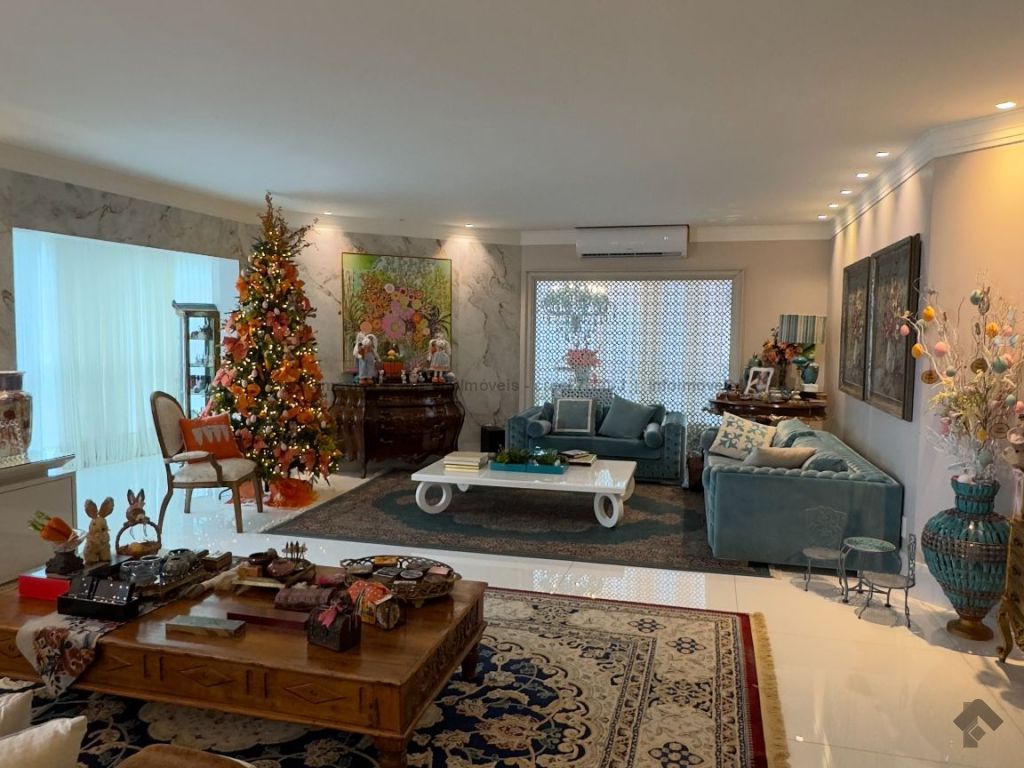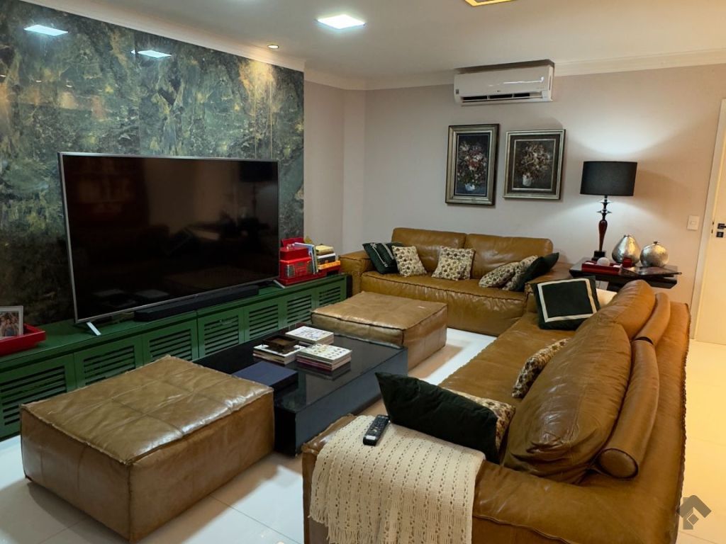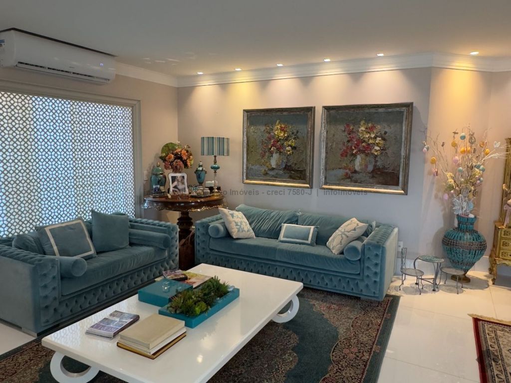 Apartamento de alto padrão no condomínio Solar das Acácias, no Jardim dos Estados. São 381 m² de área privativa e 572 m² de área total, com 4 vagas no subsolo. Planta espaçosa com sala de estar/jantar, sala de almoço e sala íntima, todas com sacada, lavabo, cozinha com despensa, guarda-louça, área de serviço com WC, 3 suítes e uma suíte master com closet.