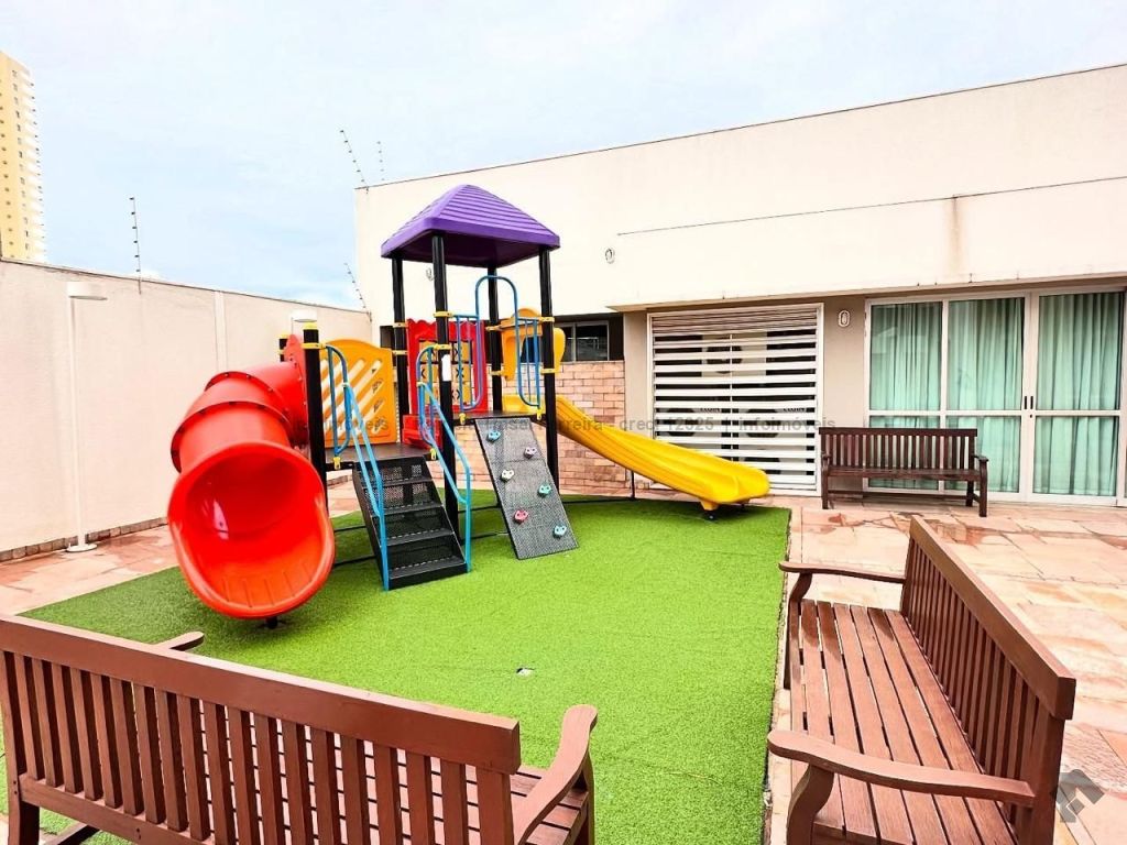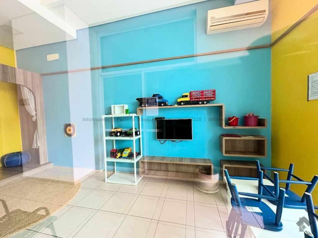 Apartamento com uma suíte e dois quartos, ambientes amplos e integrados, possui lavabo, sala ampla, cozinha, sacada generosa com churrasqueira, lavanderia e o melhor, muitos armários planejados. Condomínio com área de lazer completa: dois salões de festa, academia, sala de jogos, brinquedoteca, minimercado, quadra de esportes, piscinas, portaria 24 horas.