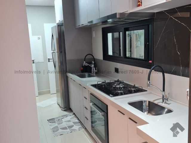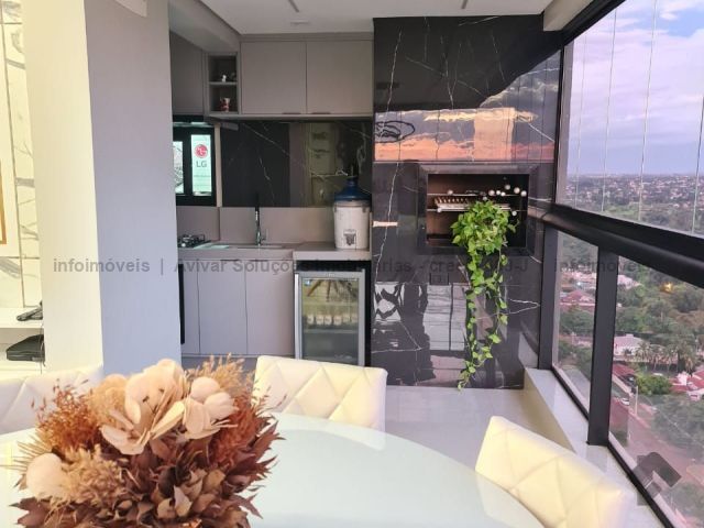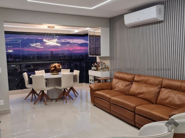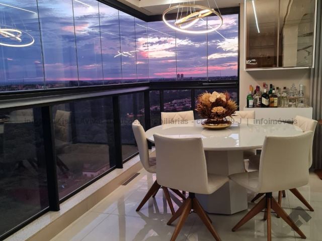 Excelente apartamento no Euro Gardem. No vigésimo andar com sala de TV com painel, rack e sofá elétrico, cozinha equipada com cooktop, forno, coifa e armários, 01 suíte com closet, 02 quartos com armários, banheiro social, sacada gourmet toda fechada com vidro temperado, com churrasqueira, pia e armários, aquecedor a gás e 03 vagas de garagem cobertas.