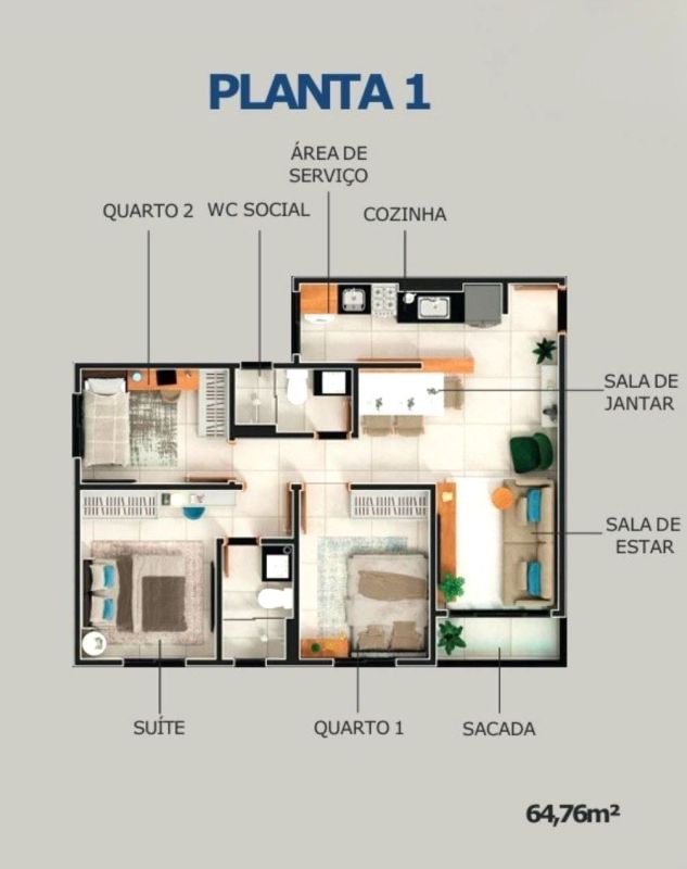 Apartamento moderno com sacada, aconchegante e bem localizado. Plantas com suíte mais 2 quartos. Salas de estar e jantar integradas com ótima cozinha, tudo isso para seu conforto e receber bem familiares e amigos. Bela área externa de convivência.