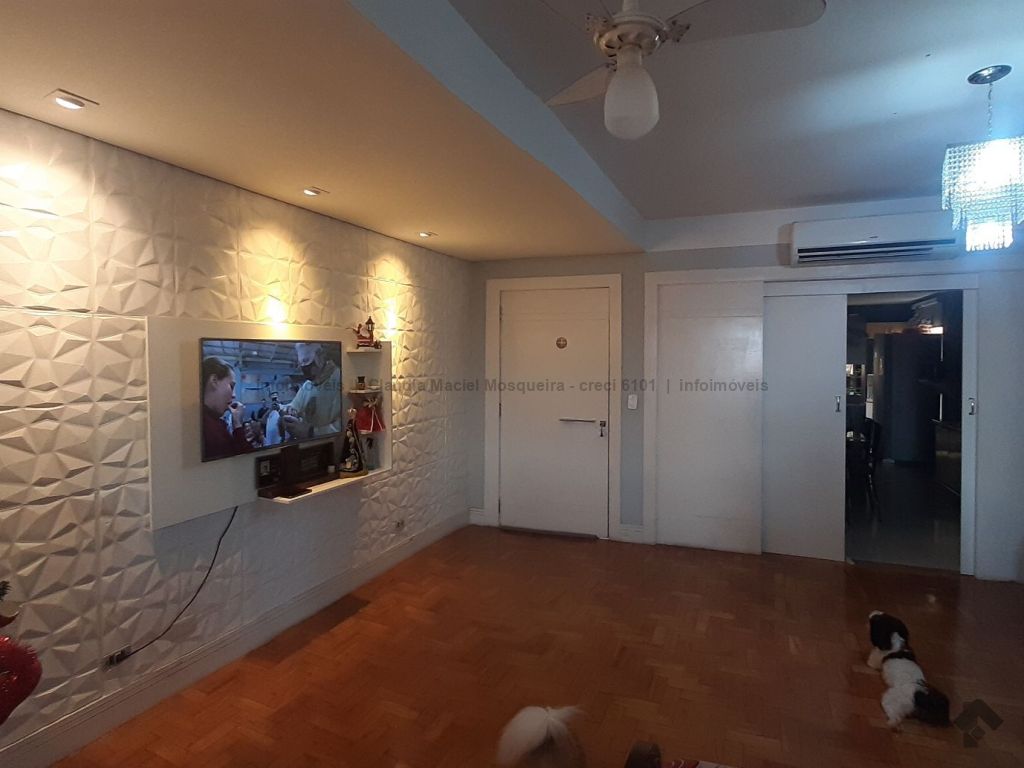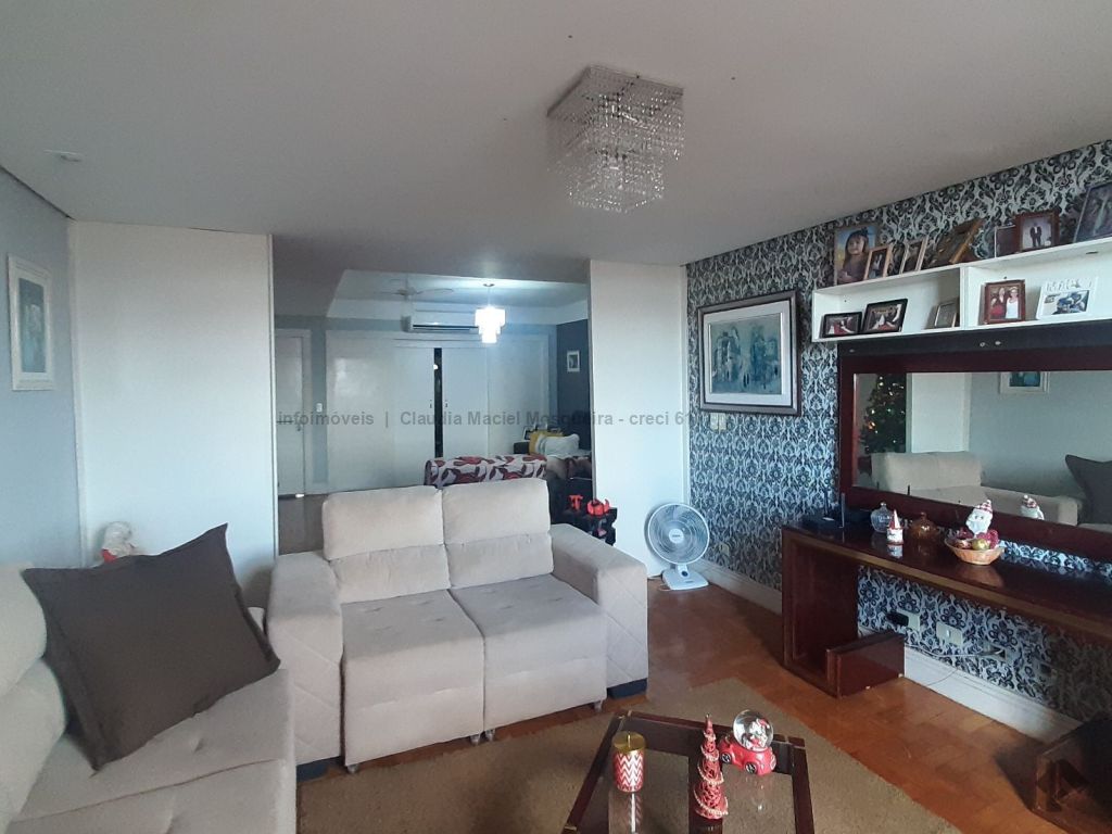 Apartamento com 3 quartos, sendo suíte com sanca de gesso e luminária em led, piso porcelanato, banheiros da suíte e social reformados, cozinha planejada com luminárias em led e fogão embutido, salas de tv e estar com sanca de gesso e luminárias em led, quarto de empregada com armário embutido, lavanderia com armários. O apartamento conta com elevador que atende o andar do imóvel.