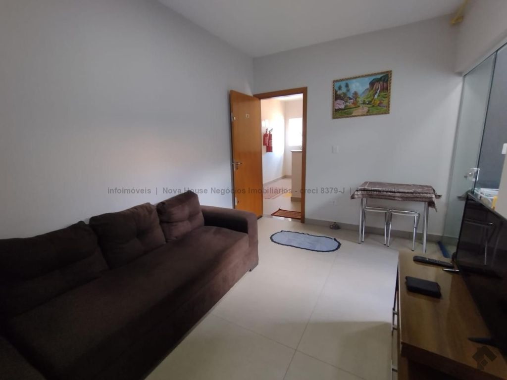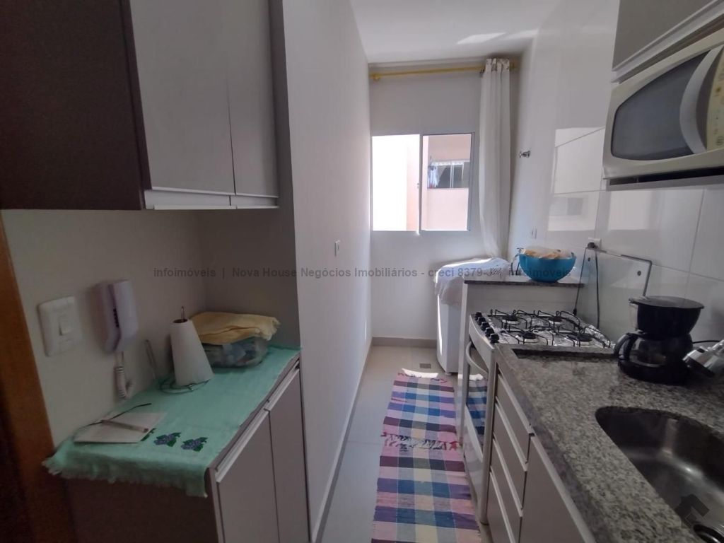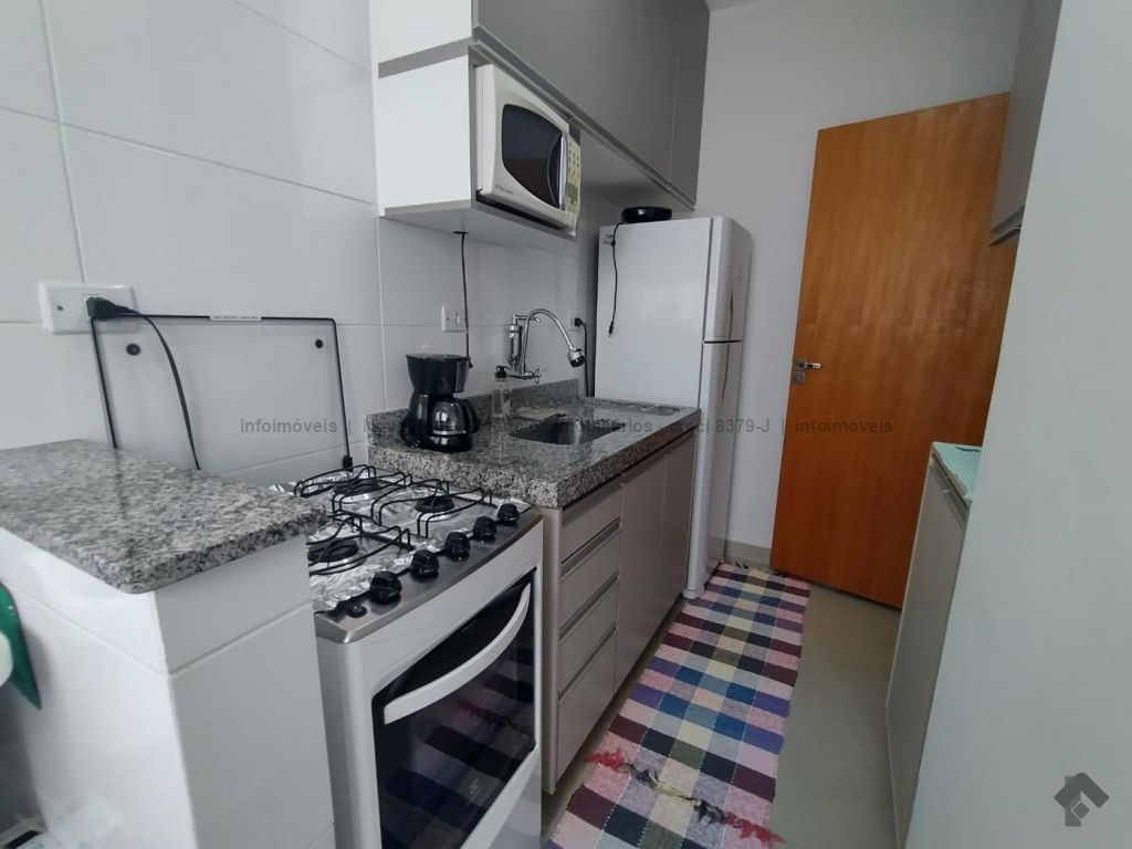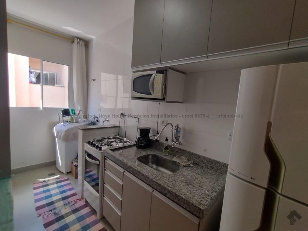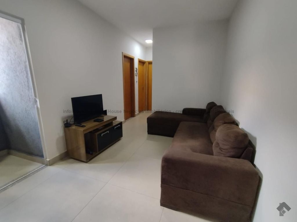 Apartamento porteira fechada. Sala de estar com jogo de sofá, rack e televisão. Dois quartos com guarda-roupas, cortina e cama, sendo uma cama de casal. Banheiro com box e armário. Cozinha com planejados, geladeira, fogão e micro-ondas, todos em ótimo estado de conservação. Prédio com apenas 6 unidades. Primeiro andar com 1 vaga de garagem e possibilidade de acomodar mais 1 veículo. Condomínio com cerca elétrica e alarme.