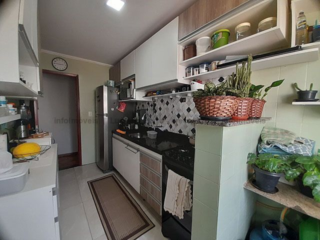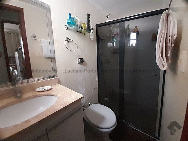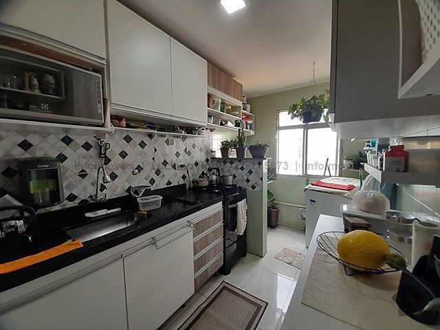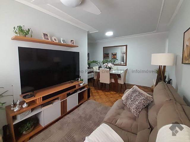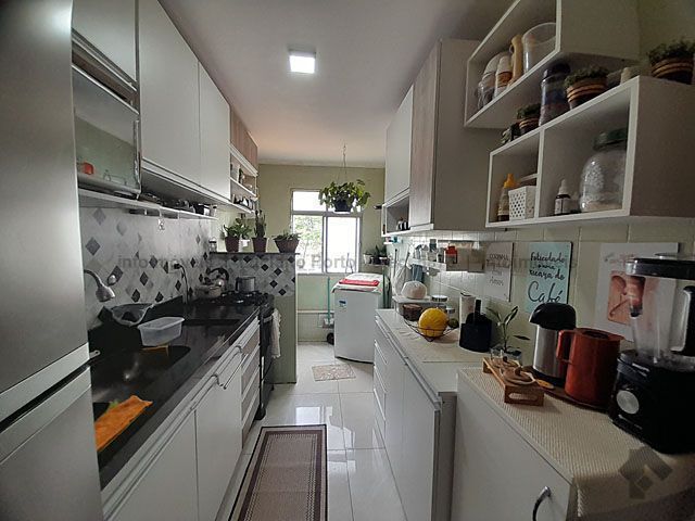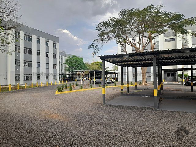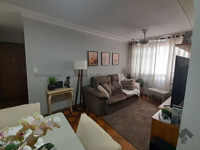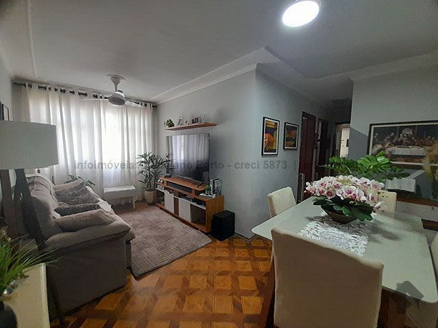 Apartamento com três quartos, sala dois ambientes, cozinha com bancada e armários planejados, banheiro com granito e blindex, corredor, área de serviço. Sancas em gesso, piso de taco na sala e corredores, quartos com piso vinílico e cerâmica, quatro ventiladores de teto novos, ar-condicionado. Em bom estado de conservação, com poucos reparos para fazer, no segundo andar, uma vaga de garagem coberta.