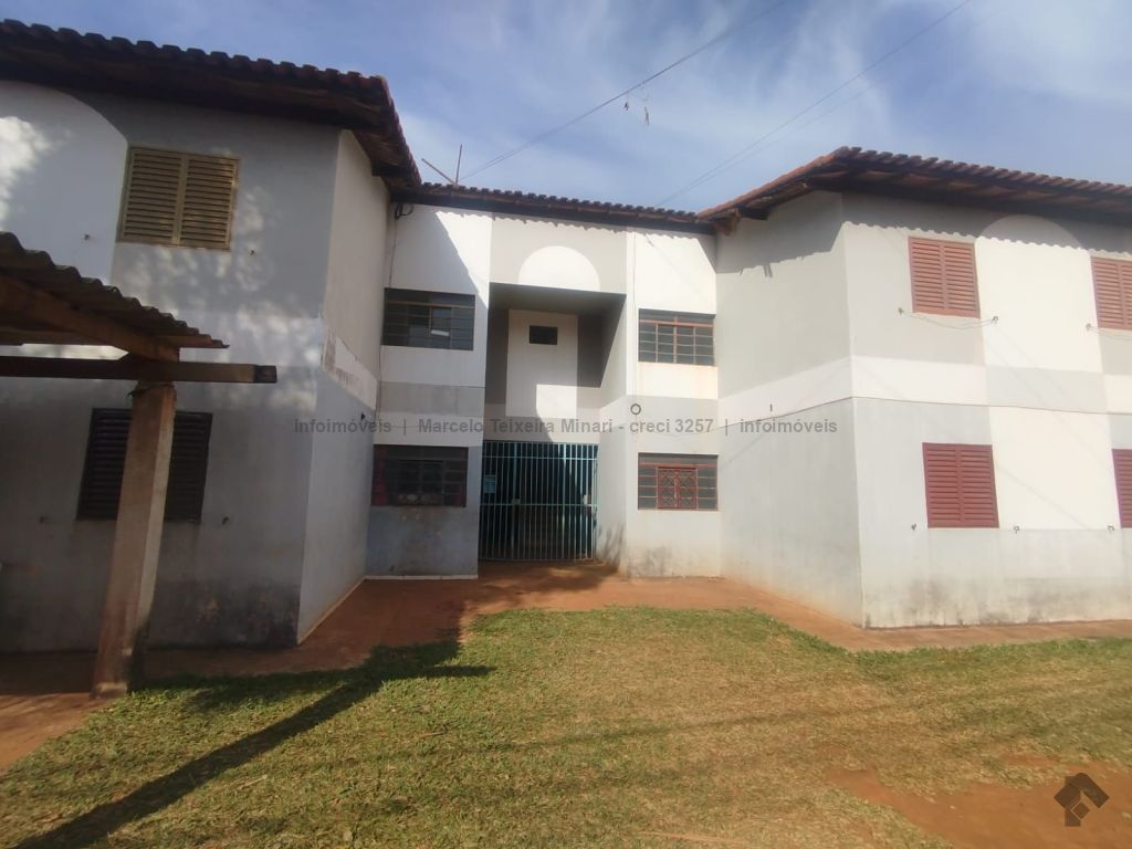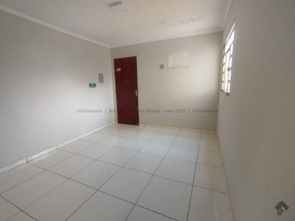 Apartamento com sala, cozinha, banheiro social e 2 quartos. Bloco fechado no 1º andar.