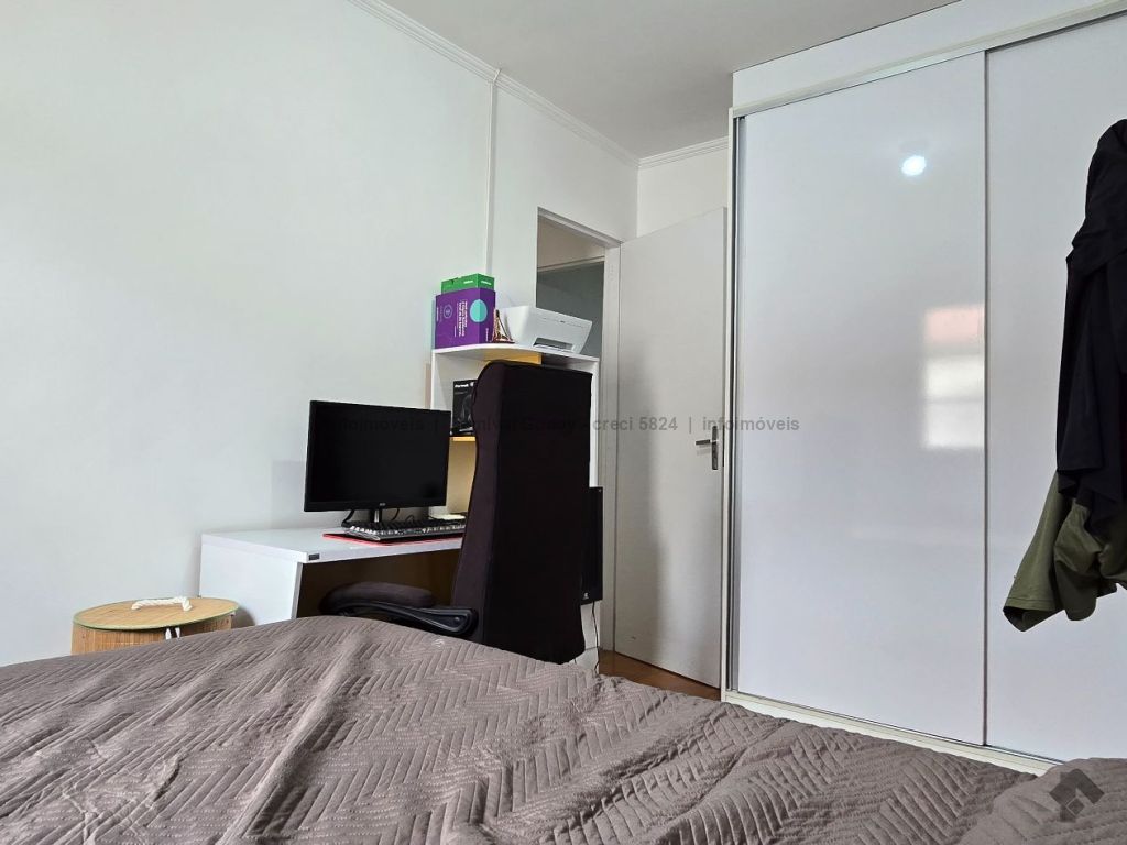 Apartamento de 3 quartos, sendo 2 com armários embutidos, configurado para 2 quartos, ficando assim com sala de jantar, sala de TV, cozinha com armários embutidos, garagem coberta para 1 carro.