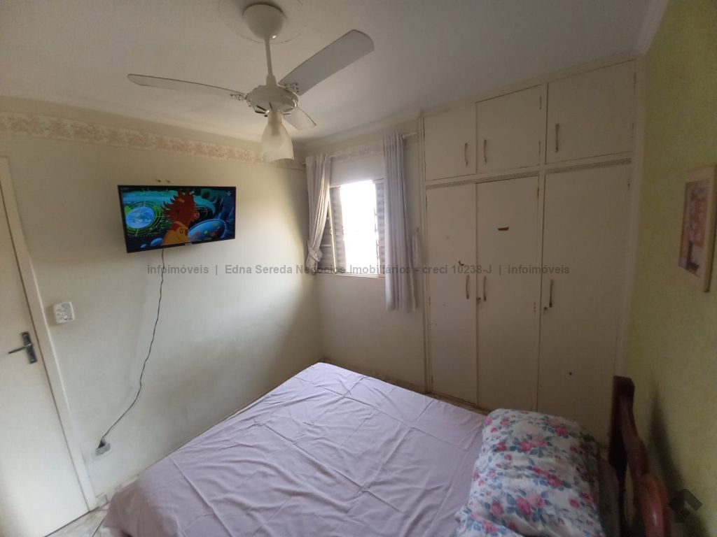 Ótimo apartamento, primeiro andar, com sala ampla, sacada, três quartos, sendo dois com armários embutidos, cozinha espaçosa com planejados, área de serviço e garagem coberta. Condomínio arborizado, com praça central interna, campo de futsal, salão de festas e portaria 24 horas com porteiro presencial.