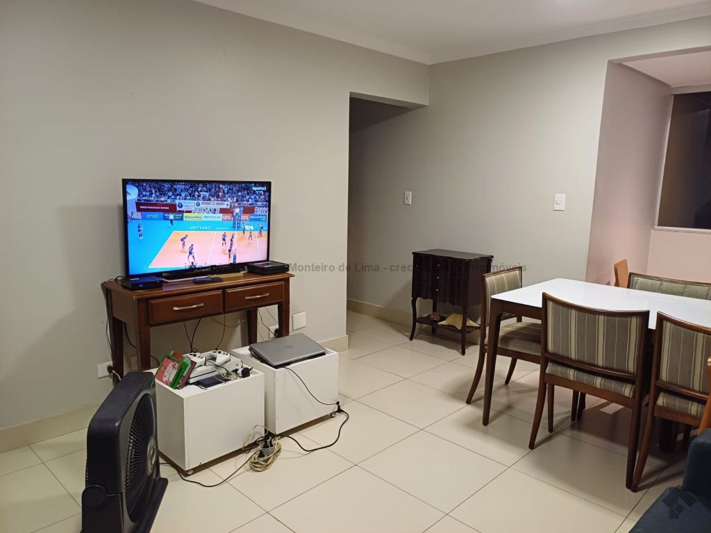O imóvel possui três dormitórios, sala com sacada fechada, banheiro, cozinha e área de serviço, além de garagem coberta próxima ao bloco, totalizando 76 m².