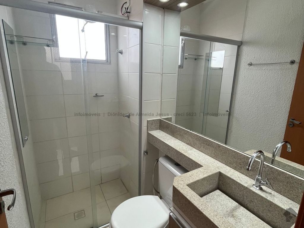 Todos os cômodos com armário planejado, pia da cozinha, bancada e balcão em granito, pia do banheiro esculpida em granito, cozinha e banheiro revestidos, porcelanato na sala, cozinha e banheiro, quartos com piso vinílico, janelas e box do banheiro em vidro temperado, espelhos na sala e no banheiro.
