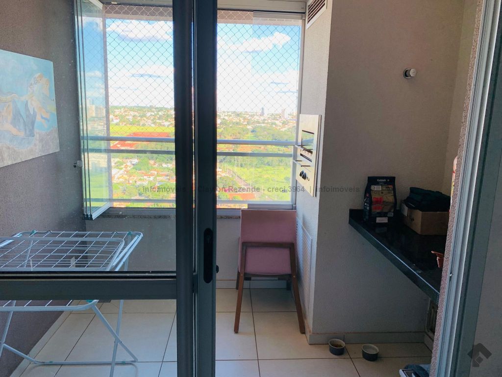 Lindo apartamento localizado no 15º andar, sol nascente, com vista panorâmica da cidade, contendo: sala de TV/jantar, cozinha americana, área de serviço, 1 apartamento com split, 1 quarto com split, banheiro social e sacada, possui box de blindex nos banheiros e churrasqueira elétrica na sacada, sacada com fechamento em blindex no sistema reiki e 1 vaga de garagem coberta. O prédio possui um condomínio espetacular, contendo área de lazer completa com piscina adulto e infantil, playground, sala de jogos, brinquedoteca, solarium, quadra poliesportiva com isolamento verde, academia, salão de festas, salão gourmet e amplo jardim.
