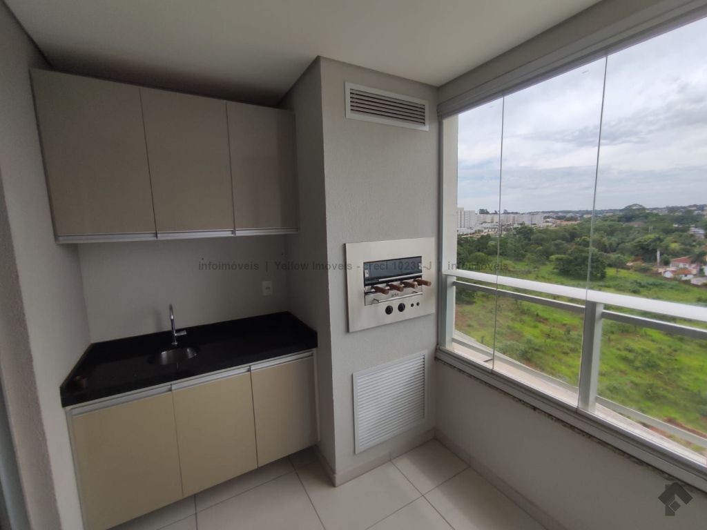 Apartamento com uma suíte toda planejada, dois quartos planejados ou um quarto e um closet e sacada gourmet.