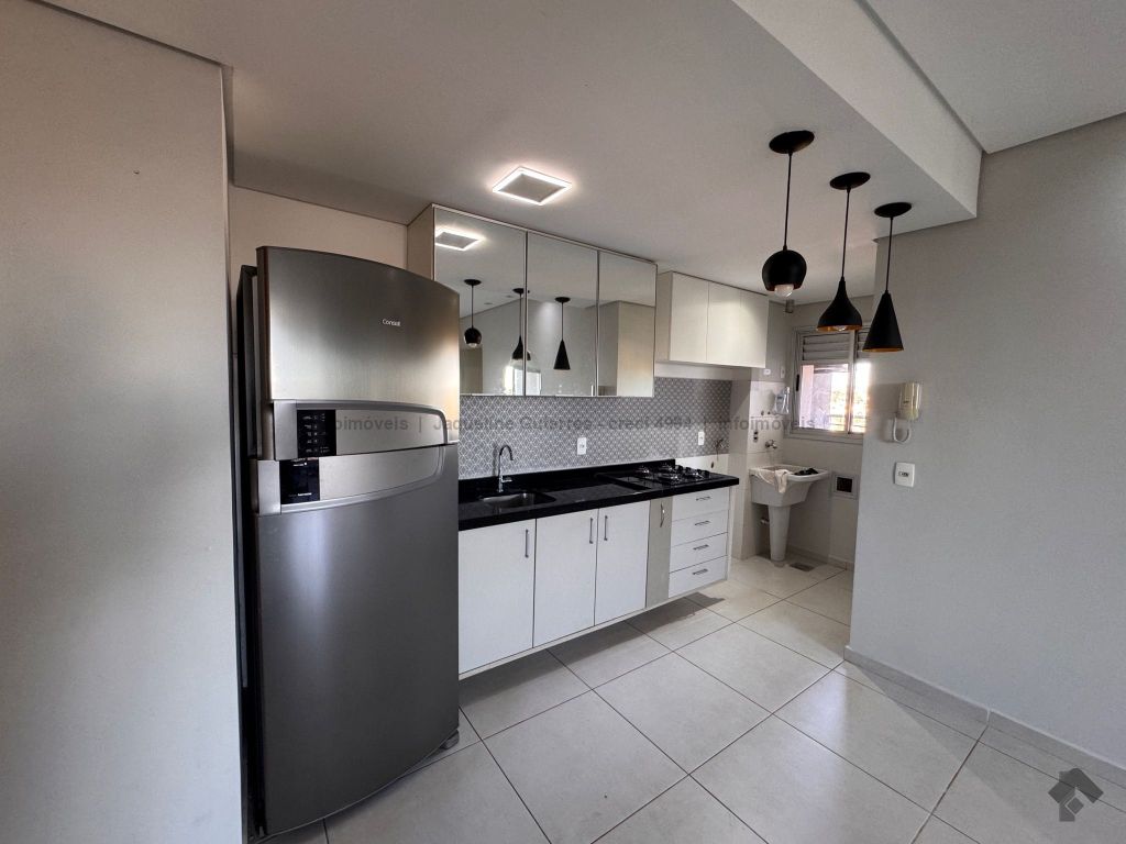 Apartamento aconchegante com linda vista e varanda gourmet com churrasqueira, possui 1 suíte mais 2 quartos, sendo a suíte e um quarto com ar condicionado. Banheiros completos, armários e fogão cooktop na cozinha, painel da sala, 2 vagas de garagem.