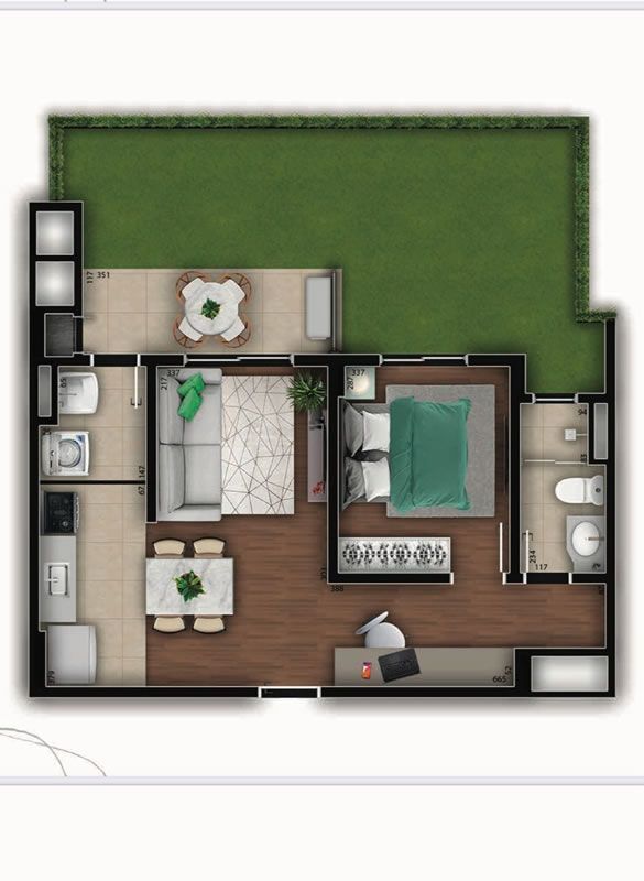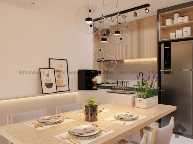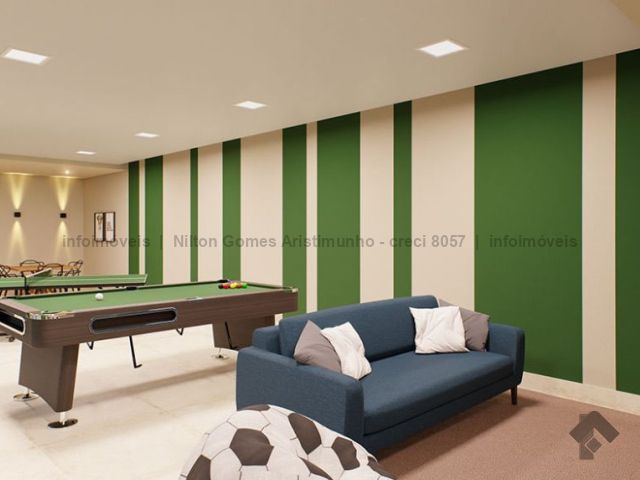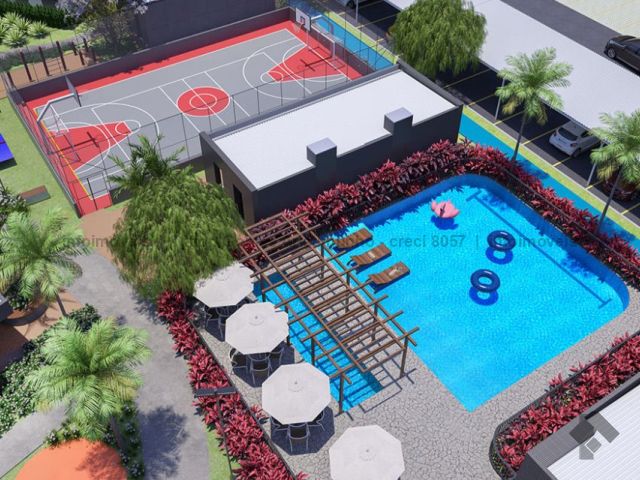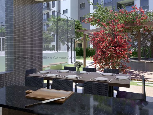 São 2 quartos, 1 banheiro social, cozinha, área de serviço, sacada com churrasqueira de carvão, áreas molhadas e úmidas em porcelanato, demais cômodos em laminado, pré-instalação para aparelhos de ar condicionado split no living e nos dormitórios, 1 garagem. Método construtivo convencional. Portaria com 3 entradas e 2 saídas de veículos. Condomínio com salão de festas para 60 pessoas, salão gourmet para 30 pessoas, salão de jogos, piscinas adulta e infantil, playground, 6 churrasqueiras, paisagismo, academia, academia ao ar livre, quadra poliesportiva, quadra de areia, pista de caminhada e espaço pet.