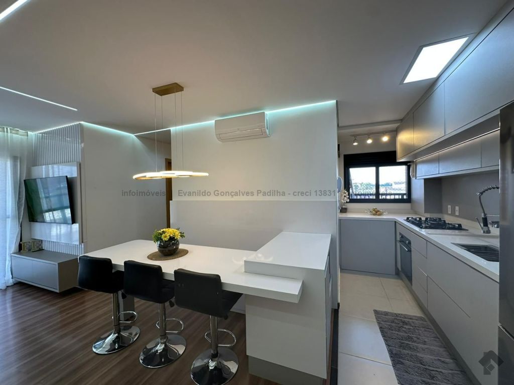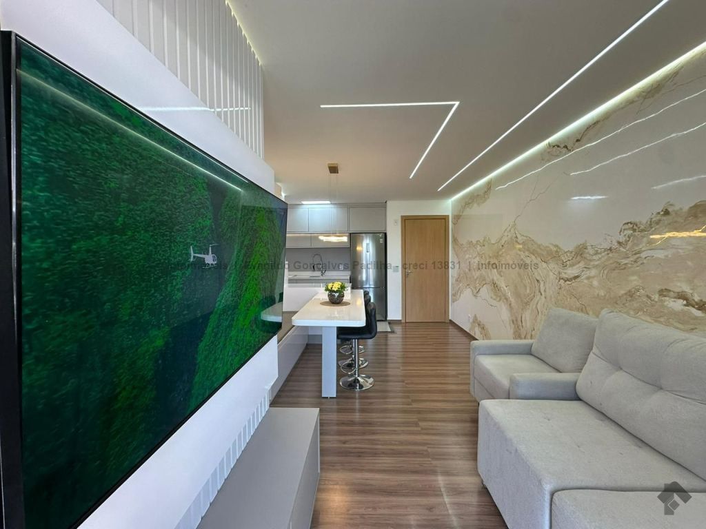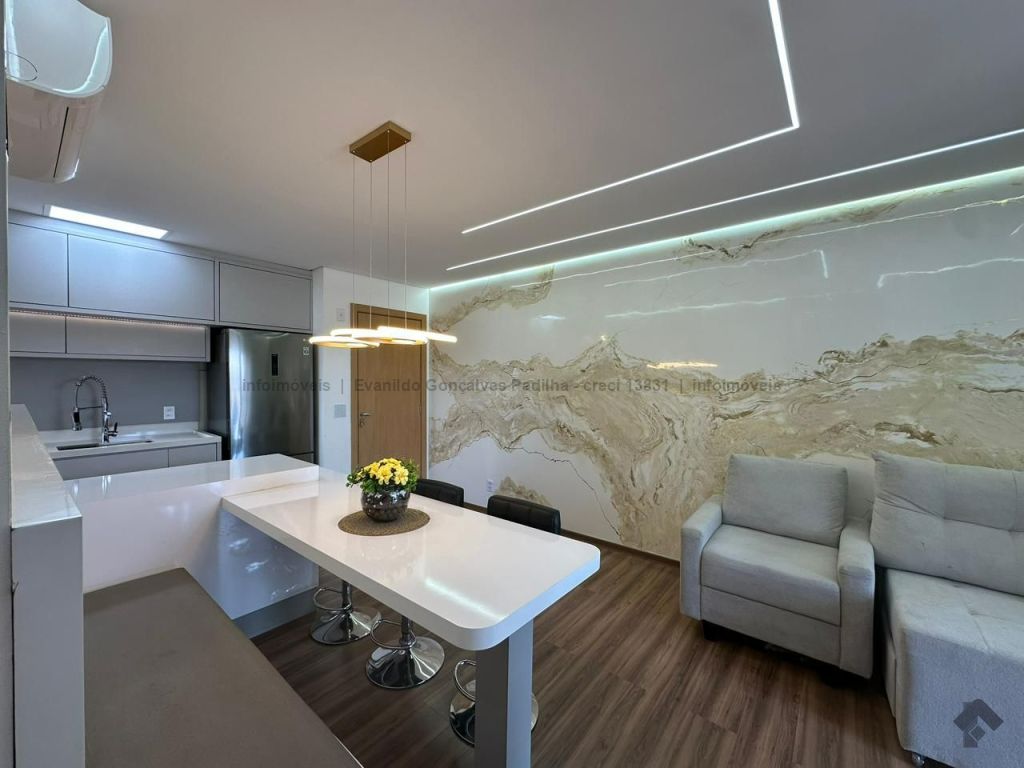 3 quartos, sendo 1 suíte (todos mobiliados). Sacada com churrasqueira. 2 vagas de garagem coberta tipo gaveta. Localizado no 4º pavimento. Cozinha, sala de estar e jantar integradas, com design moderno. Parede da sala com efeito marmorizado, trazendo sofisticação e elegância. Pia em quartzo alongada, móveis planejados com sistema abre/fecha por toque. Água quente e fria na cozinha. Sistema de iluminação em LED personalizado e integrado à Alexa. Quartos mobiliados, incluindo a suíte. Guarda-roupa sofisticado com portas de vidro escurecido (visão do interior mesmo fechado) na suíte. Guarda-roupa do quarto 2 com porta em espelho e painel de TV. Ar-condicionado nos quartos e sala. Pronto para morar.