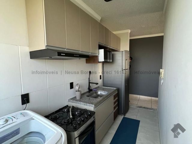 Residencial Colina dos Ipês, apartamento no 5º andar. Apartamento todo decorado e mobiliado, 2 quartos, 1 banheiro social, 1 cozinha americana, 1 sala de estar, 1 garagem coberta.