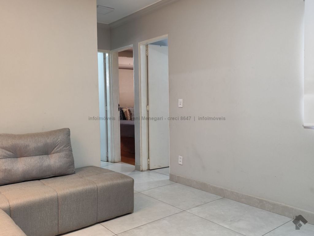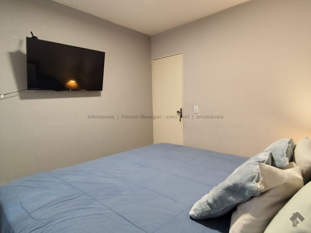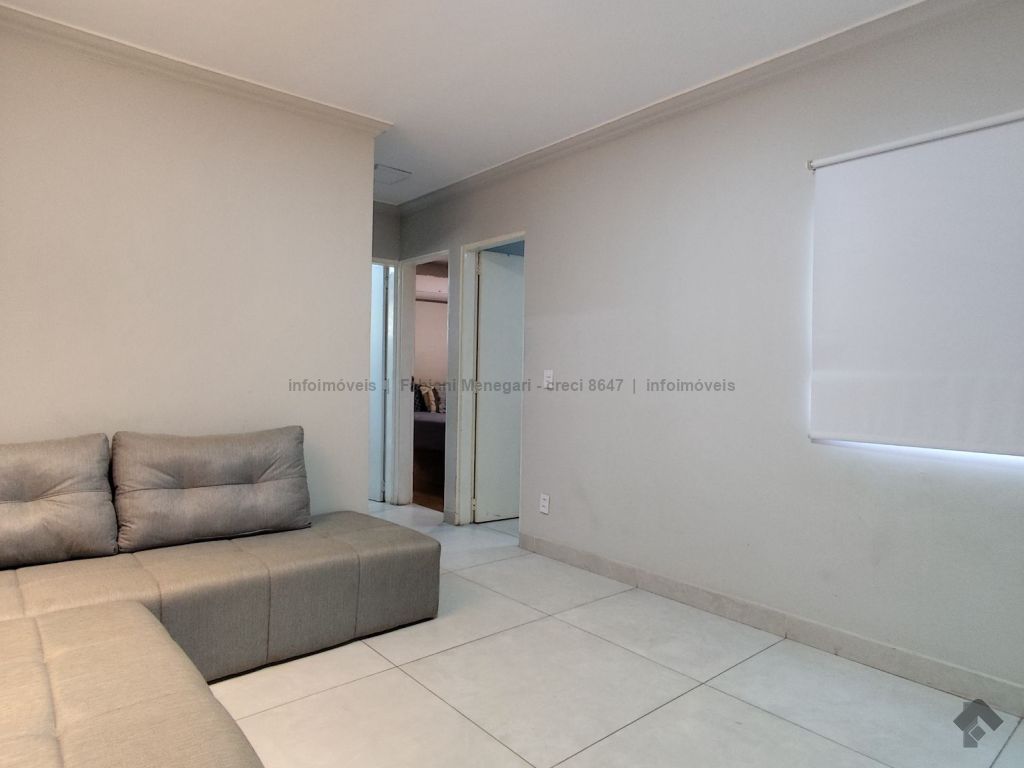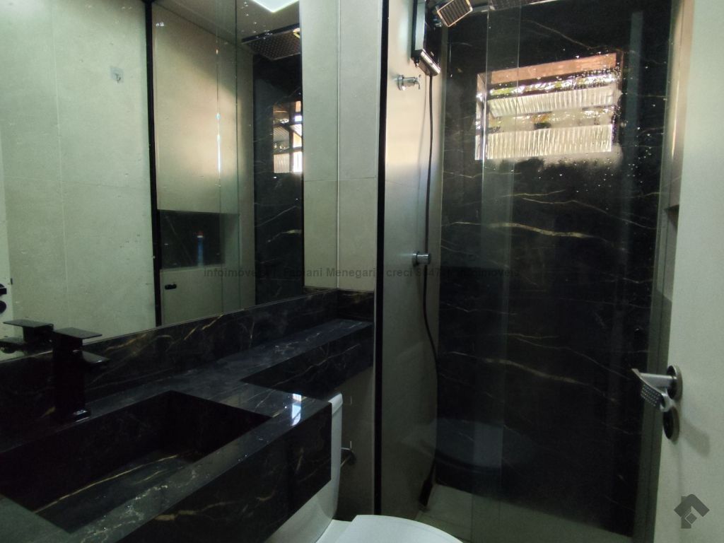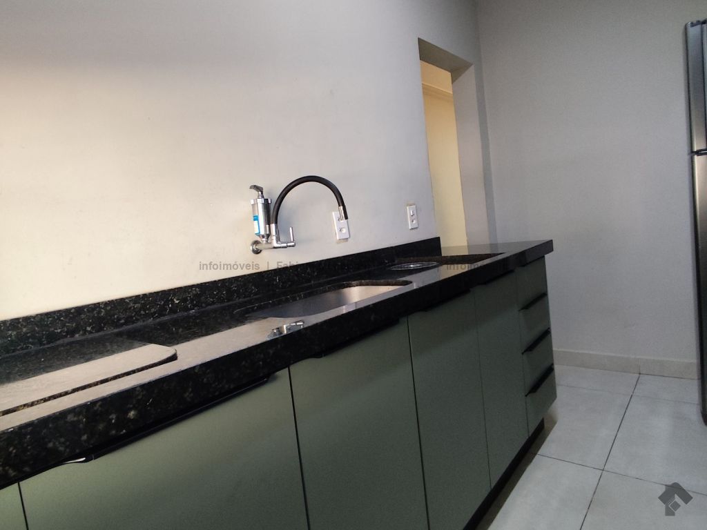 Sala ampla e confortável, com sofá e persiana sob medida. Cozinha planejada, em um sofisticado tom de verde fosco, com armários novos e de excelente qualidade. Equipamentos inclusos: geladeira, fogão, micro-ondas, coifa, máquina de lavar roupas. Quarto principal com cama king, ar-condicionado, televisão e papel de parede decorativo. Segundo quarto com guarda-roupa de casal. WC moderno com pia em mármore, box e chuveiro.