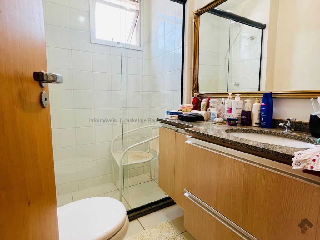 Apartamento ideal para quem valoriza bem-estar, ventilação, sol nascente e uma vista especial. Possui uma sala ampla com dois ambientes e ventilador de teto, propiciando integração entre sala de estar e jantar. Cozinha com armários e prateleiras. Dois quartos com ar-condicionado, suíte também com ar-condicionado, com espaço para closet. Todos os banheiros com armários embutidos.
