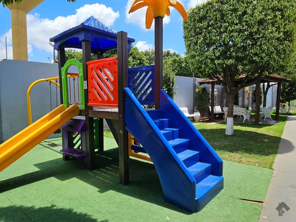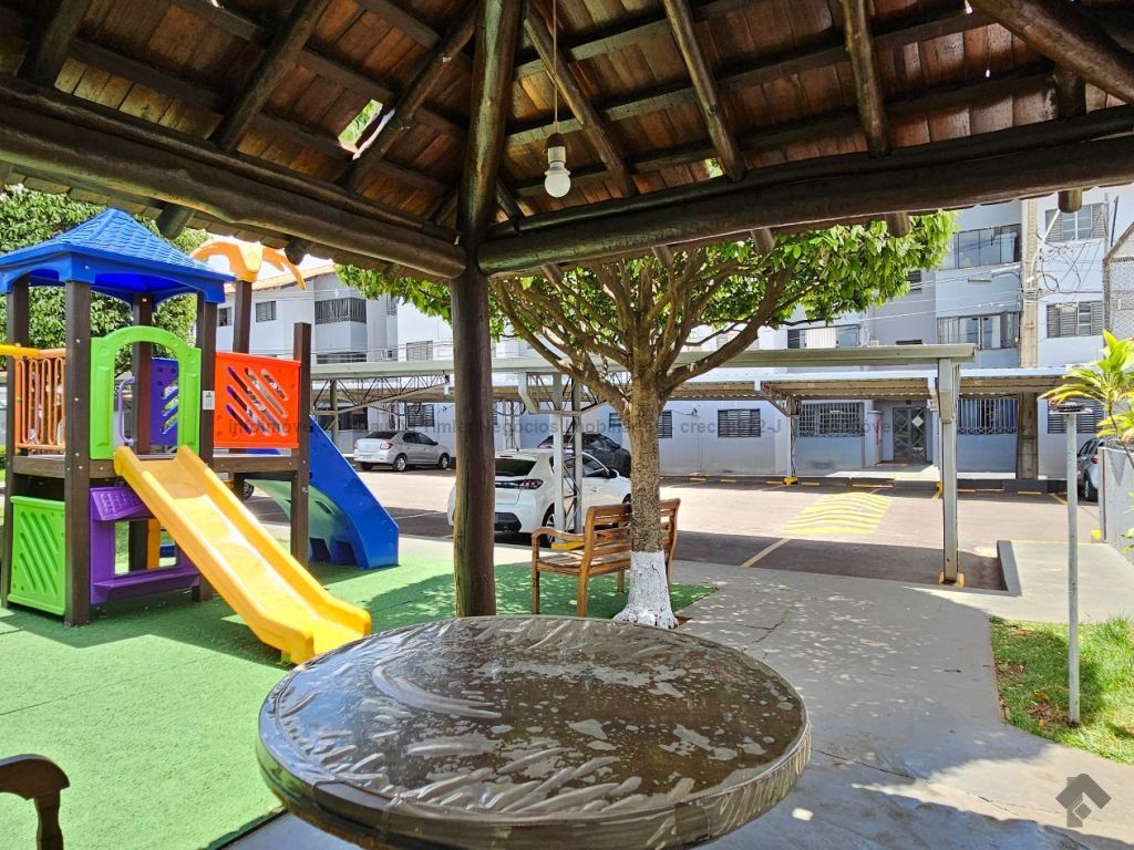 Condomínio com portaria 24 horas e área de lazer completa com salão de festas, piscina, quadra de esportes, playground e academia.
