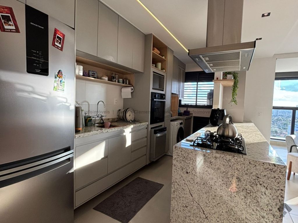 2 dormitórios, sendo 1 suíte, 1 quarto, banheiro. 2 vagas na garagem. Sala ampla, com espaço para três ambientes. Varanda gourmet: sacada com churrasqueira integrada aos ambientes, sala e churrasqueira. Cozinha: opção de cozinha com ilha. Acabamentos comuns: porcelanato e ou piso laminado, laje técnica e preparação para ar-condicionado.