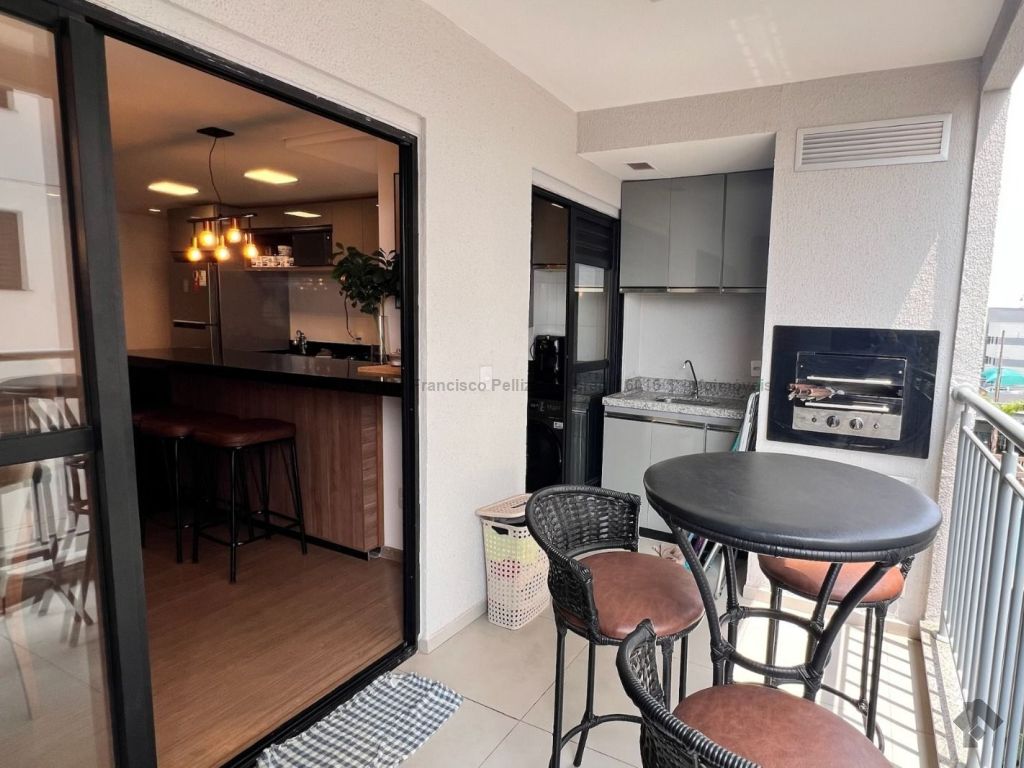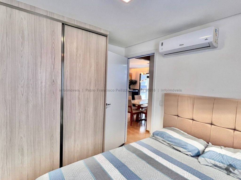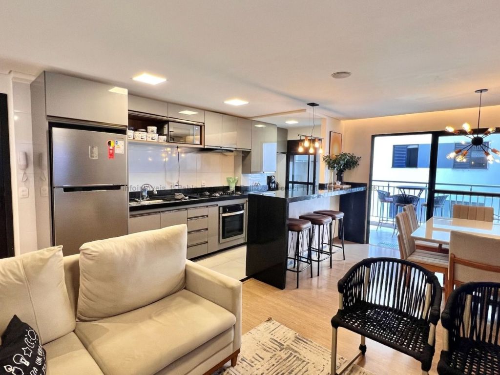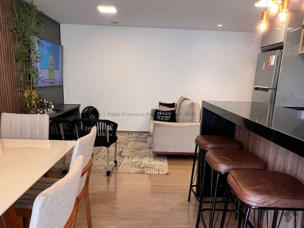 Apartamento equipado com móveis planejados na cozinha, móveis planejados nos quartos, móveis planejados nos banheiros com espelho, móveis planejados na área da sacada, churrasqueira na área da sacada, ilha com granito preto São Gabriel, bancadas da cozinha com granito preto São Gabriel, painel de TV com rack, aquecedores a gás nos chuveiros, box nos dois banheiros, gesso com sanca nos quartos, gesso na sala e cozinha com sanca, iluminação nas sancas e fechadura eletrônica. Torre 1, terceiro andar.