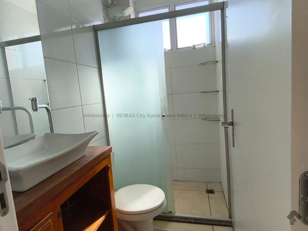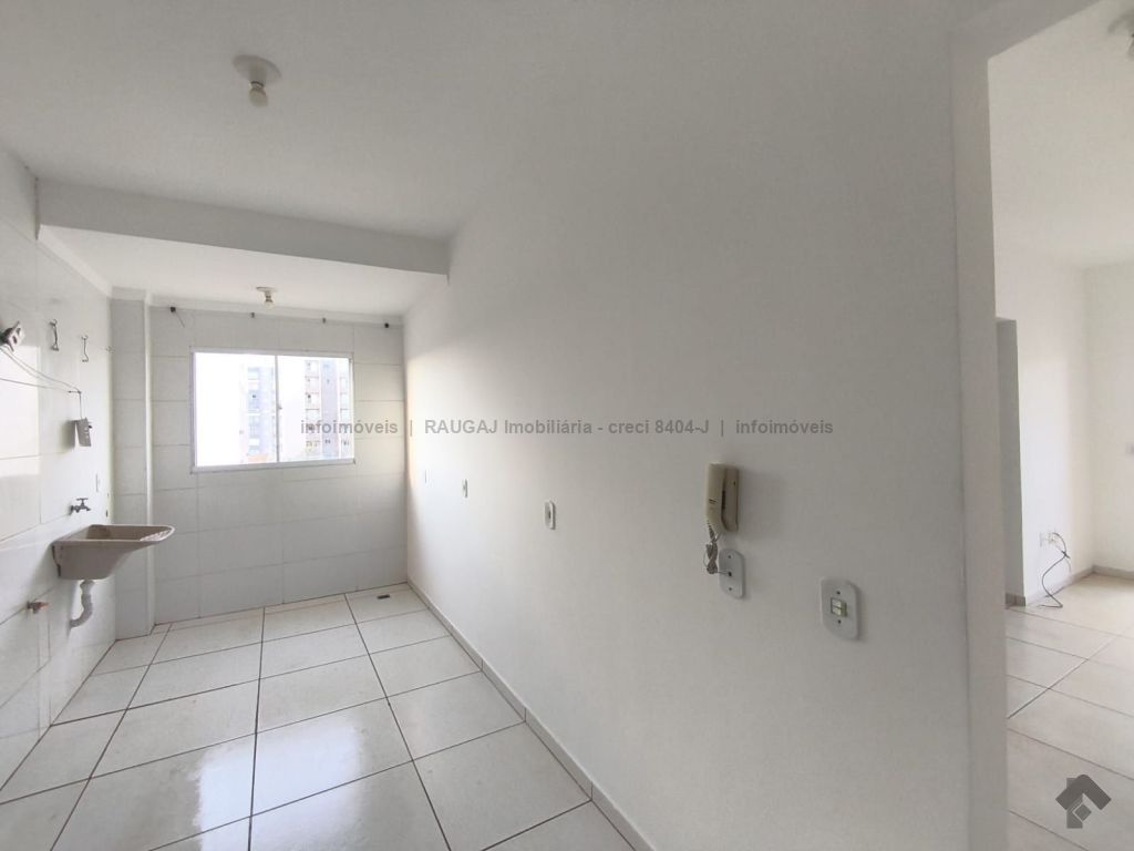 O apartamento encontra-se no 7º andar, área construída de 54,45 m², com acessibilidade para cadeiras de rodas, elevador e 1 vaga de garagem. Possui 2 quartos, 1 banheiro, sala com sacada e cozinha com armários em madeira maciça.