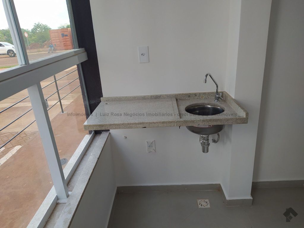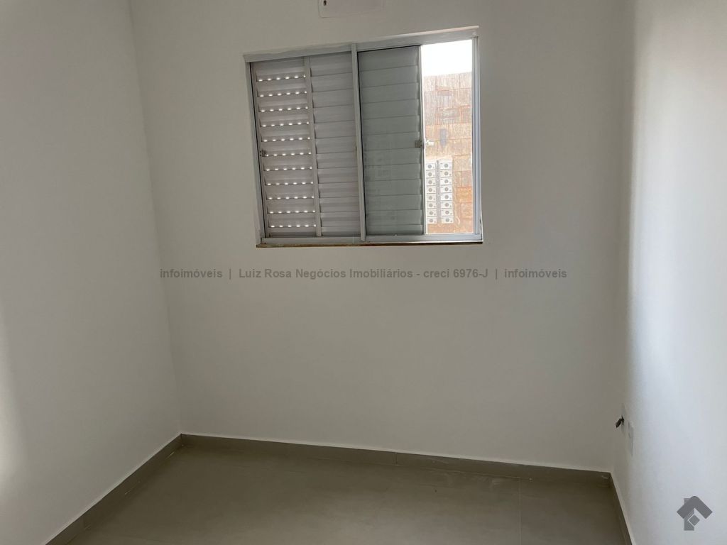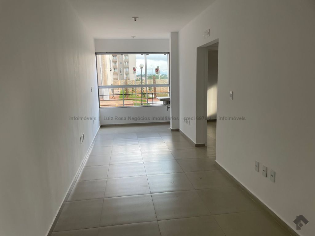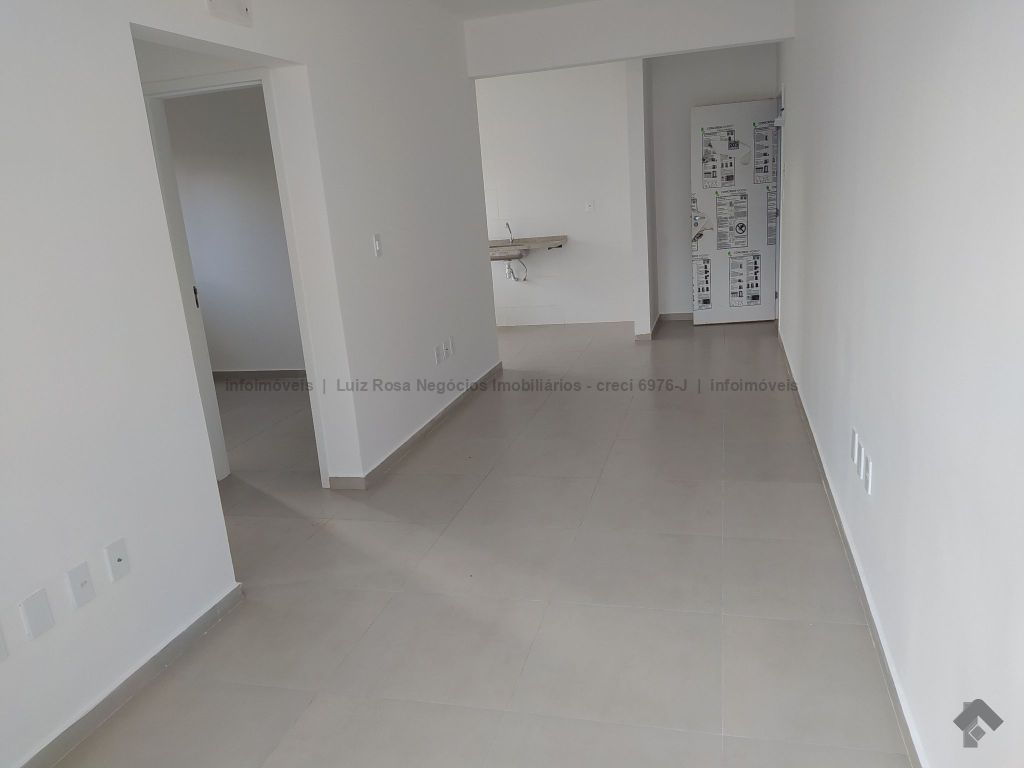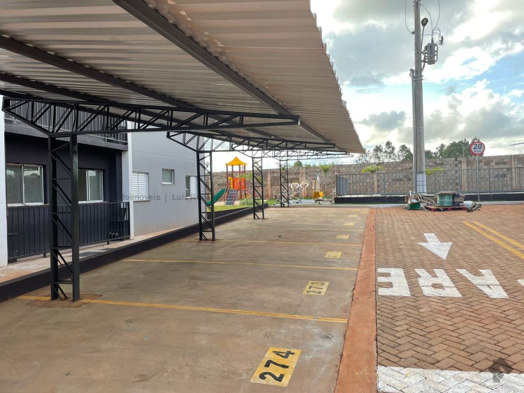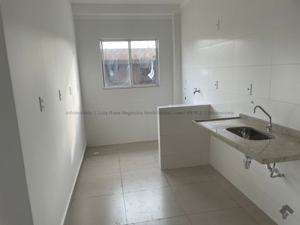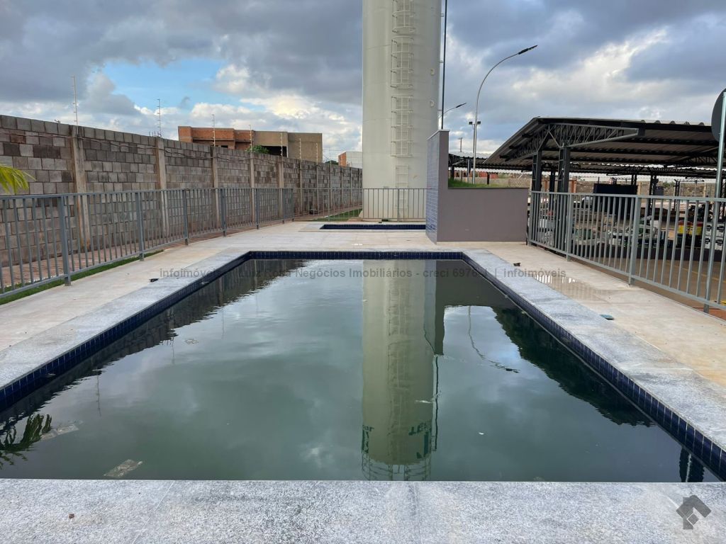 Sala ampla com sacada e churrasqueira a gás, 2 quartos, 1 banheiro, cozinha, área de serviço e 1 vaga de garagem coberta. Lazer com piscina, quiosque com churrasqueira, quadra de areia e playground.