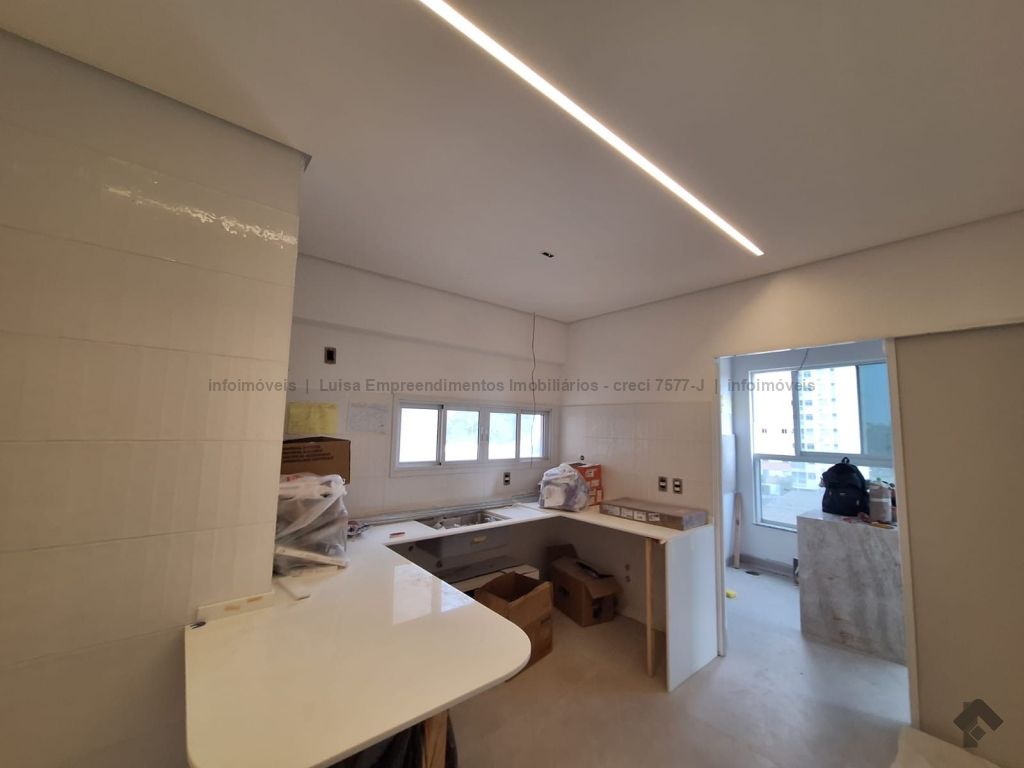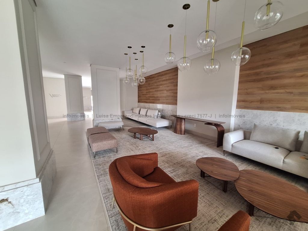 Apartamento moderno e exclusivo, piso porcelanato grande, cozinha com azulejos diferenciados e armários planejados, sala com painel e ar condicionado, despensa com prateleira, lavanderia em mármore branco, suítes e quartos com armários planejados, ar condicionado e detalhes na parede e rebaixamento em gesso com iluminação LED, bancada na varanda gourmet com churrasqueira, todos os banheiros e lavabos com piso, paredes, louças e metais modernos e de alto padrão, grande sacada com fechamento em blindex, vagas na garagem, condomínio com lazer completo.