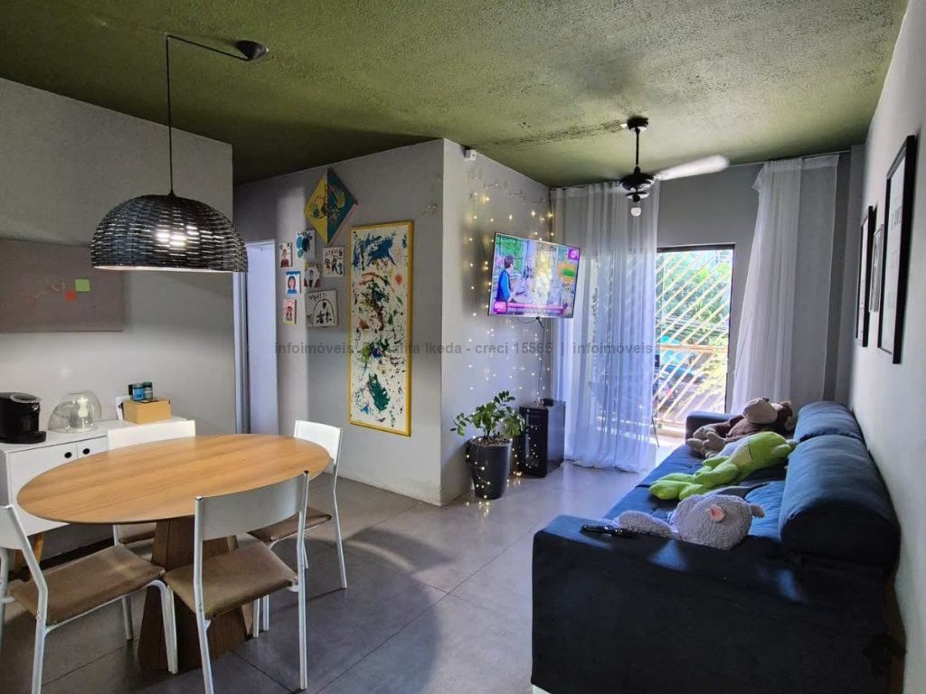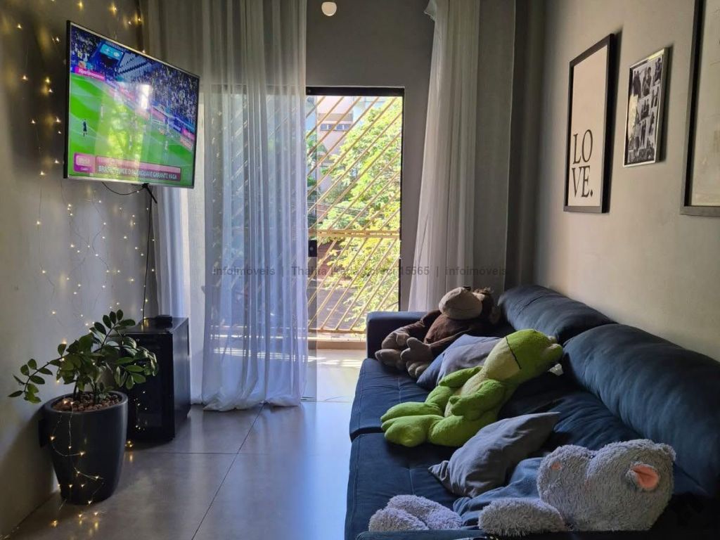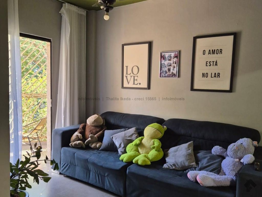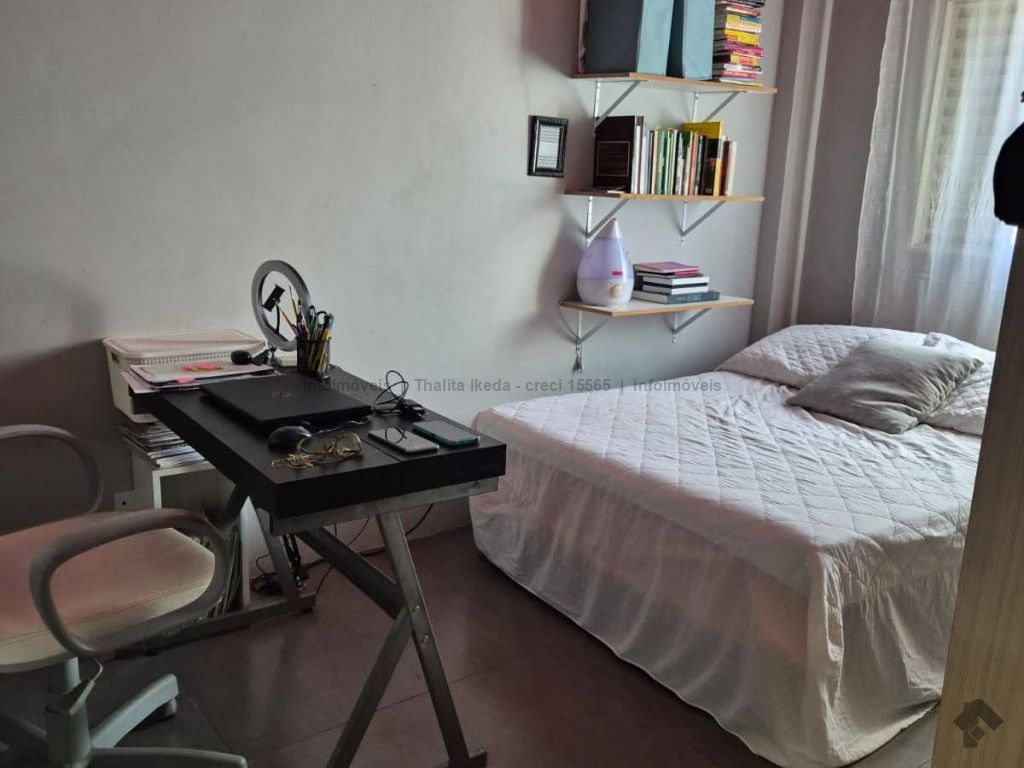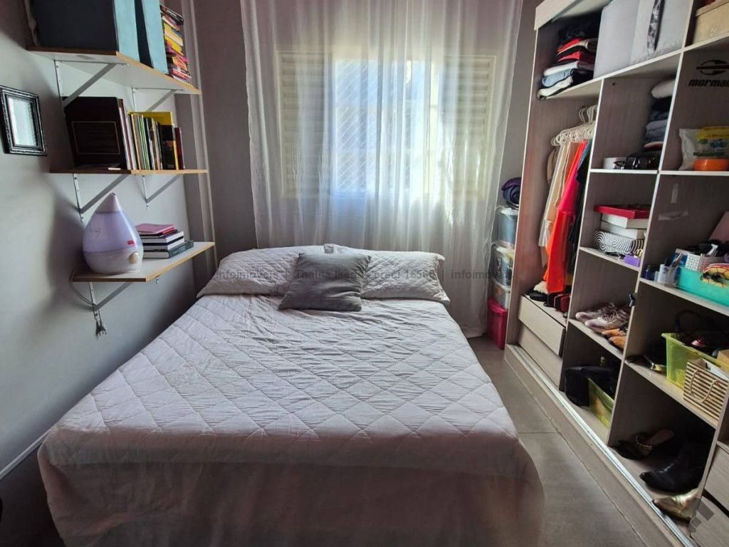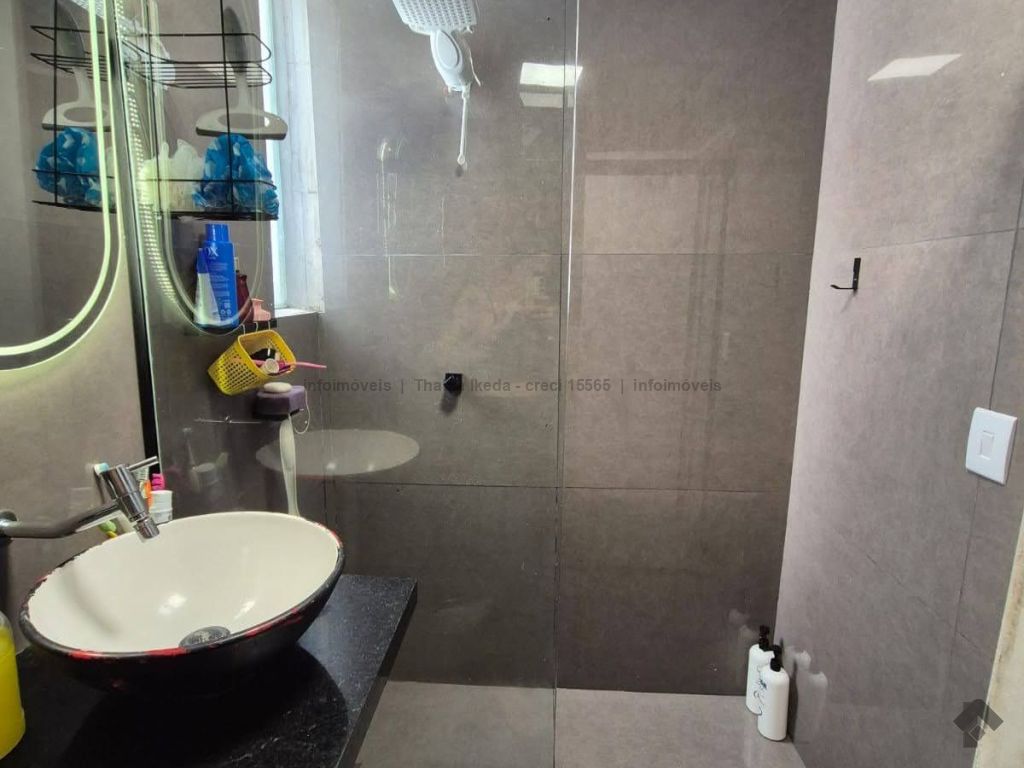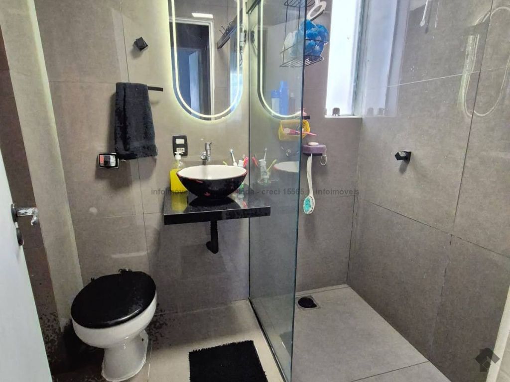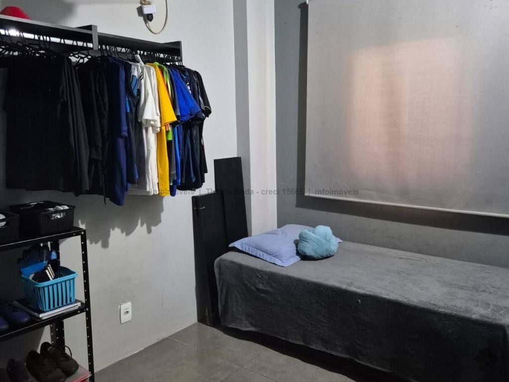 São três quartos, sala, banheiro social, cozinha americana, área de serviço e sacada, armário embutido no corredor, porão de depósito (2 m x 2 m), ficam os ventiladores de teto, ar-condicionado e armário do quarto. Apartamento no primeiro andar. O condomínio conta com quiosques de churrasqueira equipados com caixa térmica, espetos, mesas e bancos, sala de jogos com pebolim, ping-pong, sinuca, salão de festas equipado, parquinho, quadra, árvores frutíferas plantadas pelo condomínio, bastante área verde e vizinhança tranquila. Apartamento todo reformado e moderno. Sol nascente.