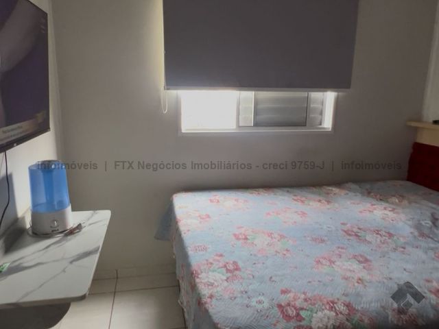 Apartamento no Residencial Orquídeas, no primeiro andar, com sala para 2 ambientes com planejados e ar condicionado incluso, sacada, cozinha com armários e fogão incluso, um banheiro social também com planejados, 2 quartos amplos com guarda-roupas embutidos. 1 vaga de garagem coberta.