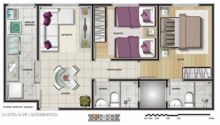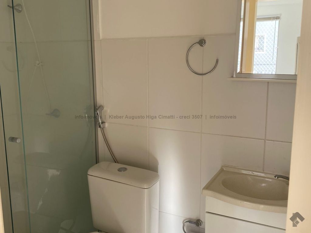 1° andar, 65,00 m². 01 sala, 01 cozinha com área de serviço, 01 suíte com ar condicionado, 01 banheiro da suíte com box de blindex, 01 quarto, 01 banheiro, social com box de blindex, 01 vaga descoberta na garagem. O condomínio tem Portaria 24h, área gourmet, mini mercado auto atendimento, área de Lazer, piscina, churrasqueira à carvão, salão de festas, abrigo de lixo, gás encanado, jardim, lavanderia coletiva, portão eletrônico, salão de festas, vagas visitas.