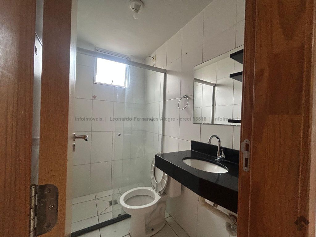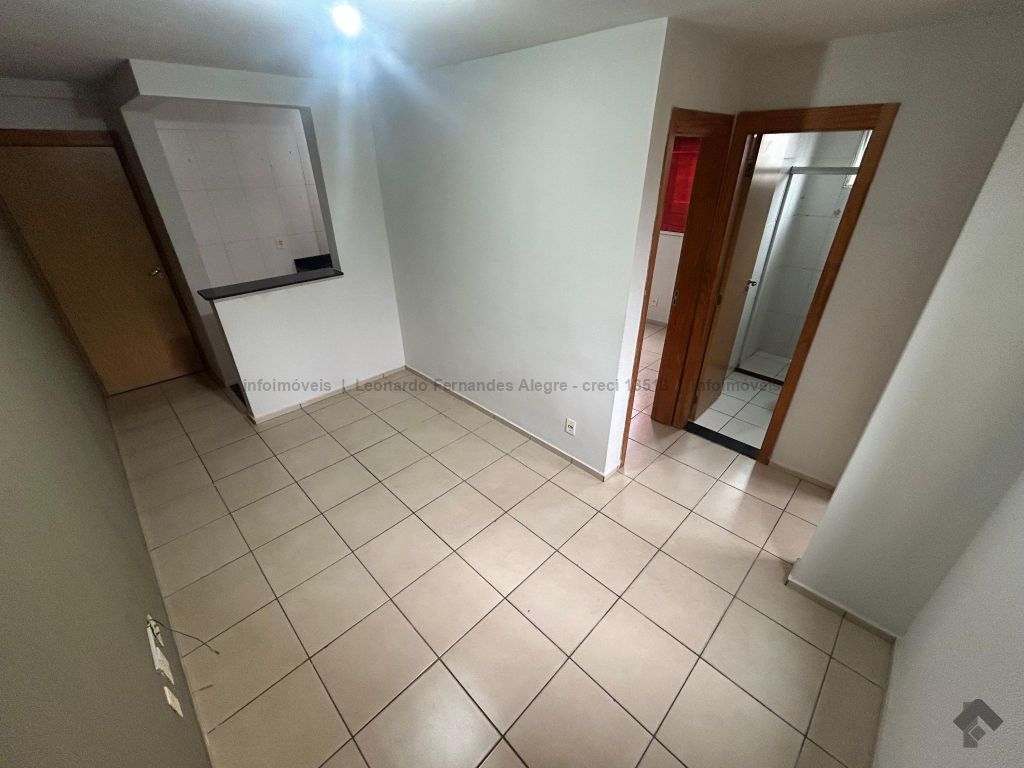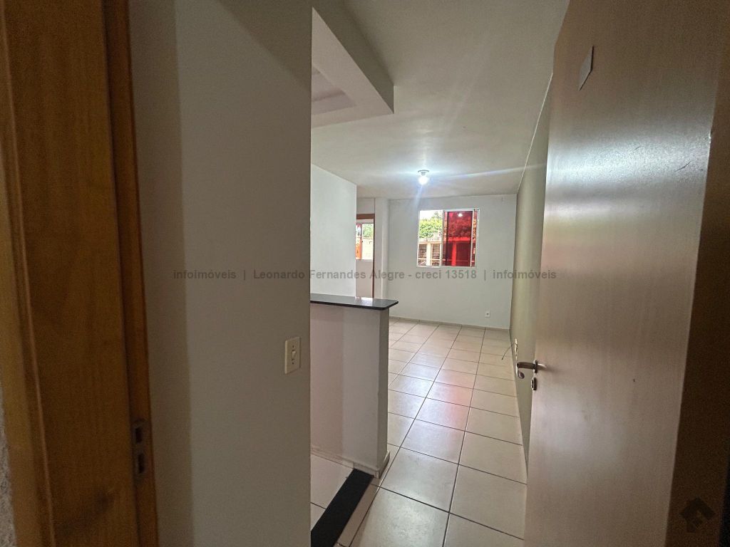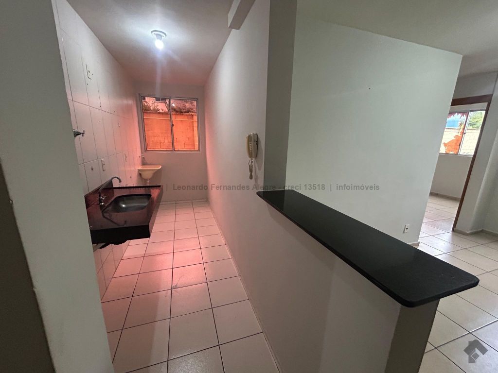 Apartamento térreo com sala, cozinha americana com pia de mármore, área de serviço, dois quartos, banheiro azulejado do piso ao teto com pia de mármore e box de vidro, uma vaga para carro bem próxima à porta de entrada do bloco, vaga para moto, portaria e segurança 24 horas.