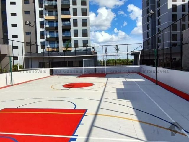 São dois quartos, um banheiro social, cozinha, área de serviço, sacada com churrasqueira de carvão, áreas molhadas e úmidas em porcelanato, demais cômodos em laminado e uma vaga de garagem. Método construtivo convencional. Portaria com três entradas e duas saídas de veículos. Condomínio com salão de festas para sessenta pessoas, salão gourmet para trinta pessoas, salão de jogos, piscinas adulta e infantil, playground, churrasqueiras, paisagismo, academia, academia ao ar livre, quadra poliesportiva, quadra de areia, pista de caminhada e espaço pet.