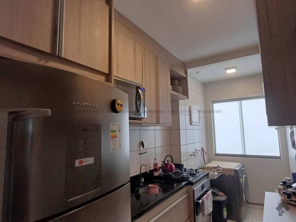 Residencial Bela Vista, frente para a área verde. Apartamento com 3 quartos sendo uma suíte, sala dois ambientes, banheiro social, cozinha, lavanderia e duas vagas de garagem coberta. Condomínio com área de lazer completa, portaria 24h, monitoramento em câmeras e mini mercado (auto atendimento).
