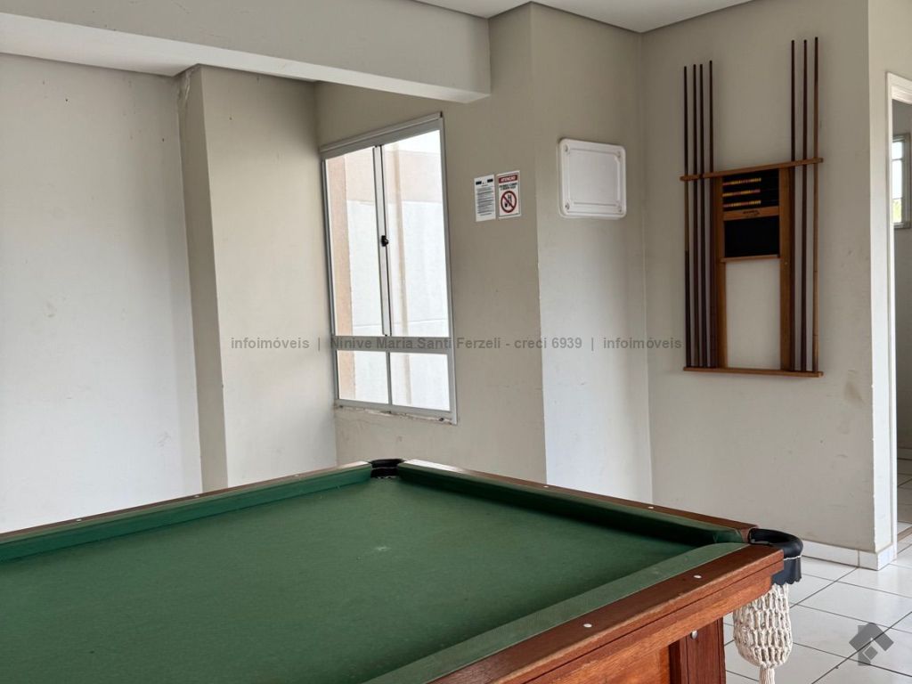Apartamento possui 2 quartos com ar-condicionado, um deles com planejados, cozinha com planejados, sacada, sala com dois ambientes, banheiro com planejados, blindex e chuveiro, tela de proteção nas janelas e uma vaga de garagem. Condomínio com muitos itens de lazer: piscina, salão de festas infantil, salão de festas adulto, coworking, escritório, ateliê para pintura, quadra de esportes, espaço kids, parquinho, biblioteca, sala de estudo, sala de pilates, sala de ioga, portaria 24 horas e mercado.