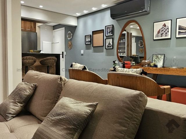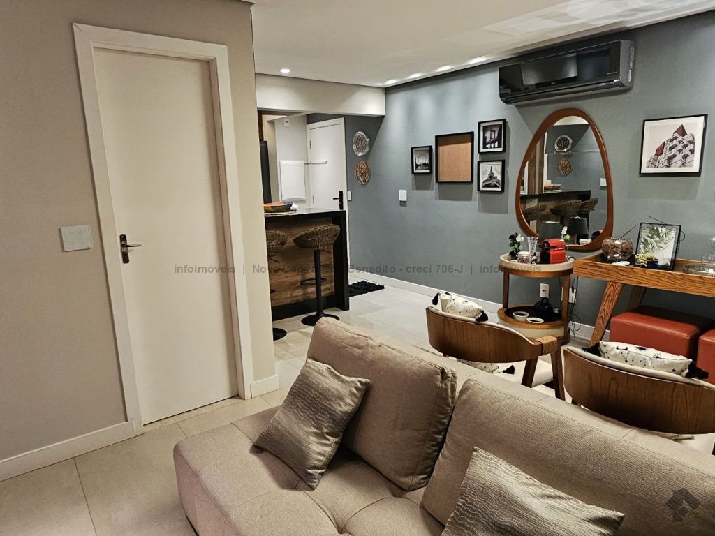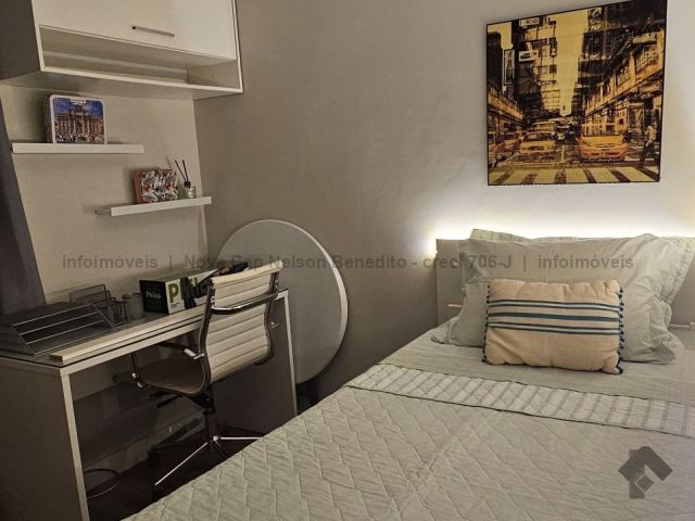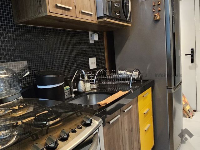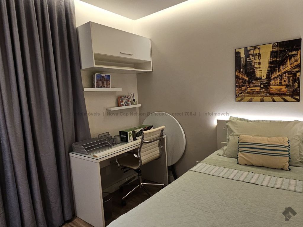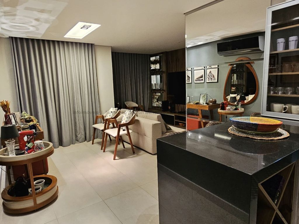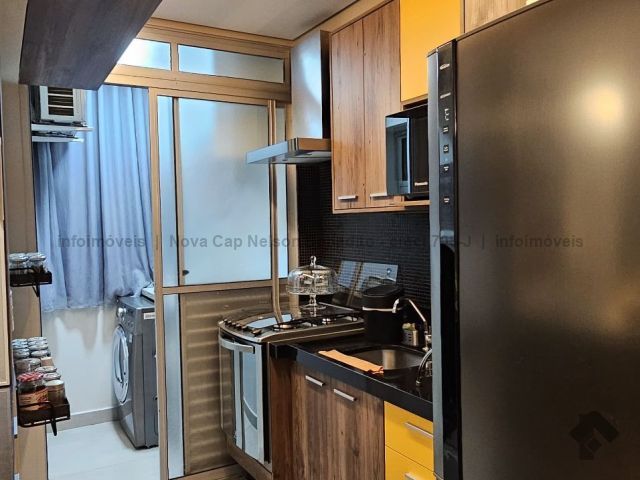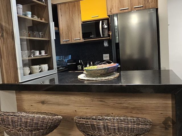 Sala para dois ambientes, cozinha com armários planejados, uma suíte com armários, um quarto com armários, banheiro social, área de serviço, duas vagas de garagem cobertas (gaveta). Apartamento decorado com automação Alexa, sol nascente, andar alto.