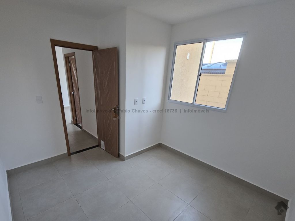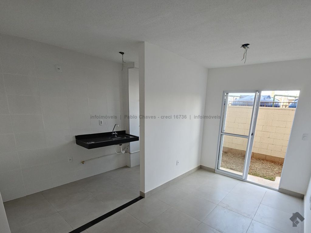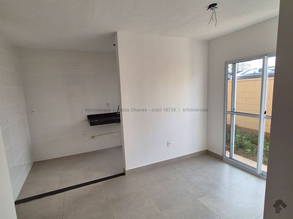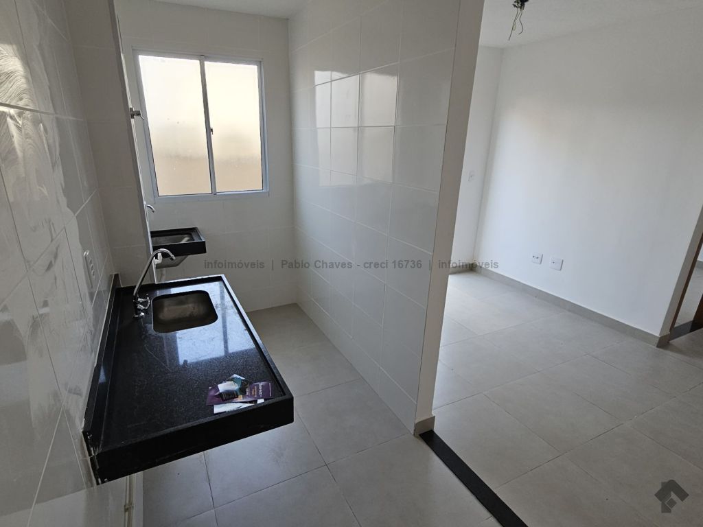 Sala, cozinha, 2 quartos, 1 banheiro, área privativa de 24 m², área de serviço, garagem coberta, condomínio monitorado 24 horas, playground, piscina, área de lazer, salão de festas, pet place.