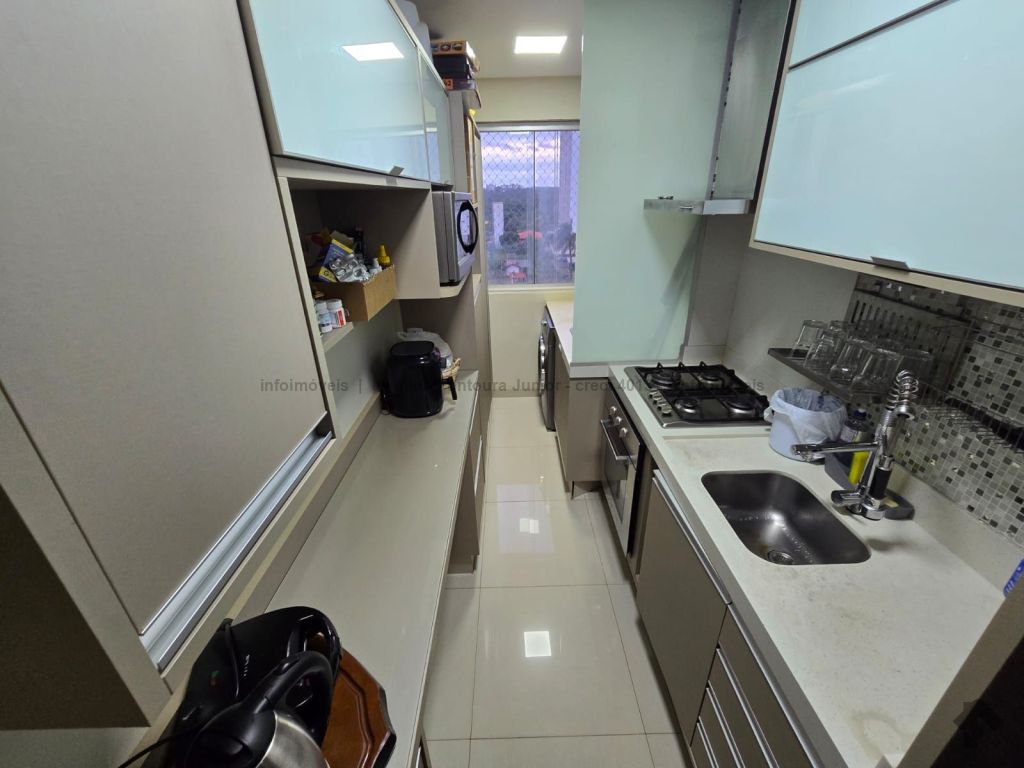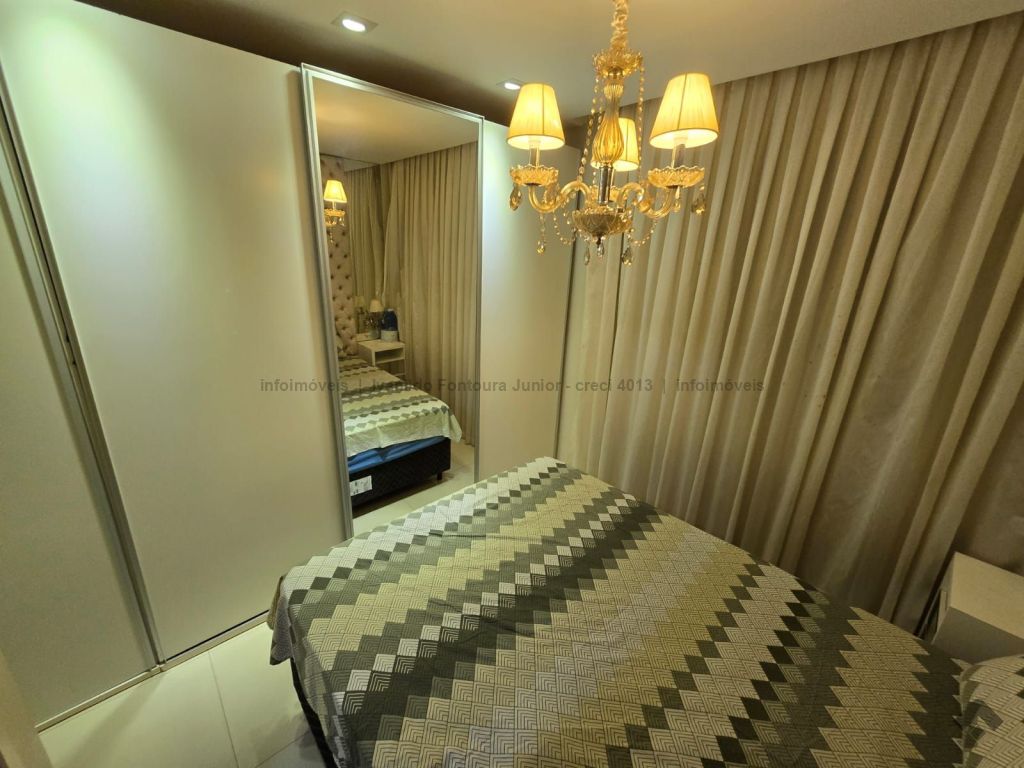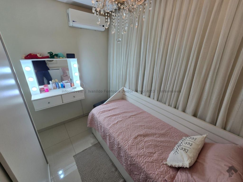 Condomínio Residencial Bela Vista, completo em armários, excelente localização, contendo uma suíte com armários, dois quartos com armários, sala com dois ambientes, banheiro social, cozinha planejada, área de serviço e lavanderia com armários, sacada e duas vagas de garagem cobertas. O grande diferencial deste imóvel é a modalidade de porteira fechada, ar-condicionado tipo split, cama de casal, duas bicamas de solteiro, sofá, mesa de jantar, televisão, geladeira, fogão cooktop, forno elétrico, máquina de lavar, entre outros. O condomínio possui área de lazer completa, portaria 24 horas, monitoramento por câmeras e mini mercado de autoatendimento.
