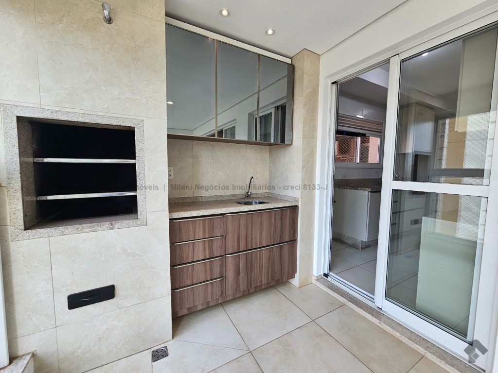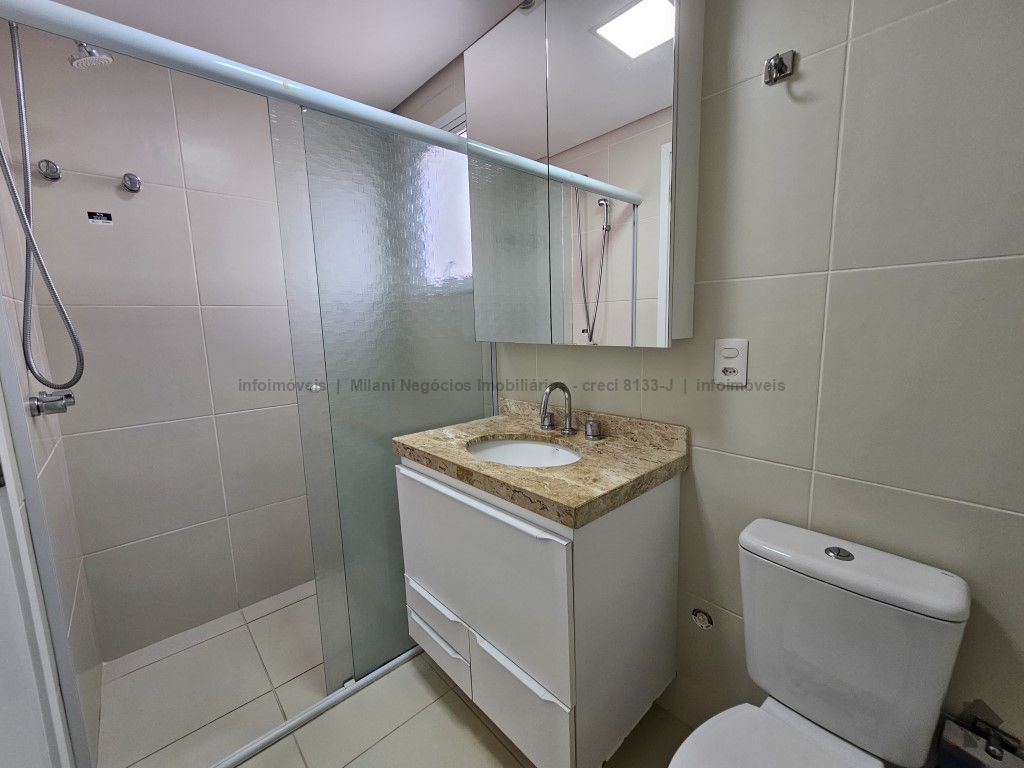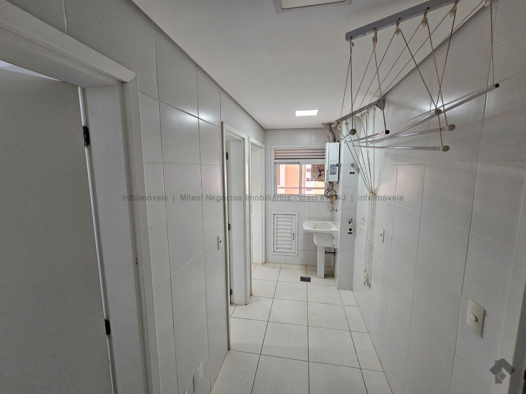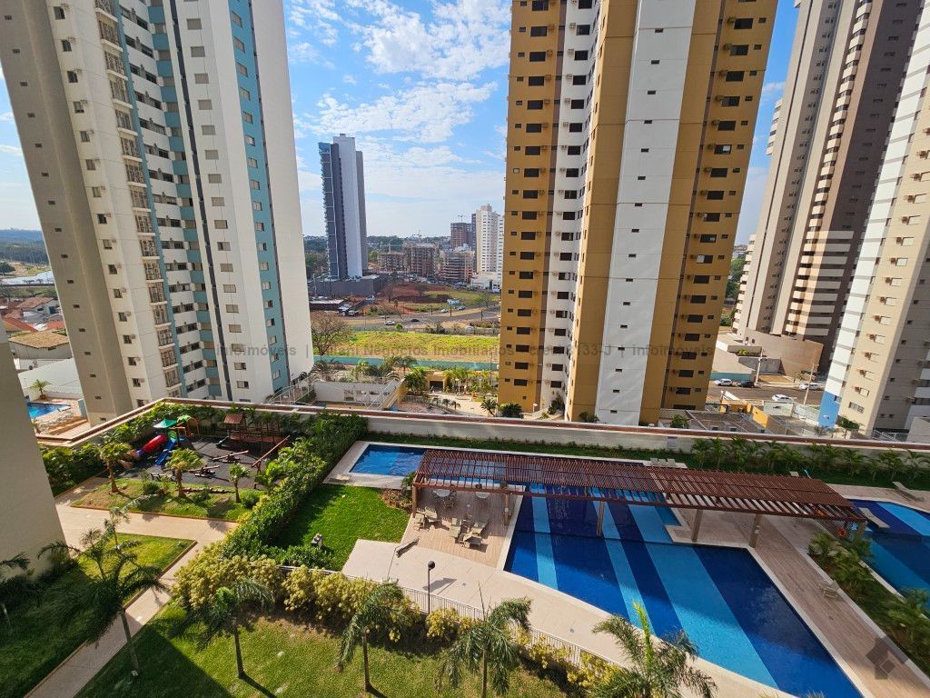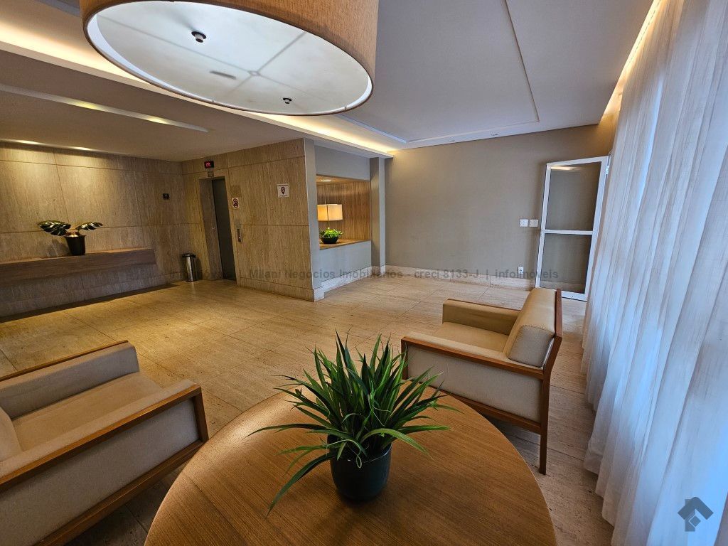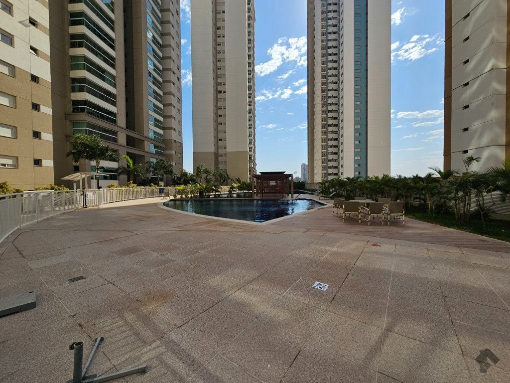 Apartamento torre B com vista para a piscina, com duas suítes e dois quartos, WC social, living com dois ambientes, lavabo, ar-condicionado, varanda com churrasqueira, cozinha planejada, área de serviço com WC e despensa, duas vagas de garagem.