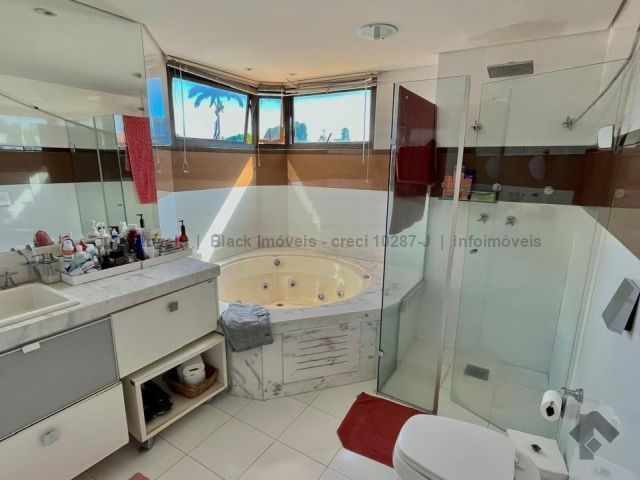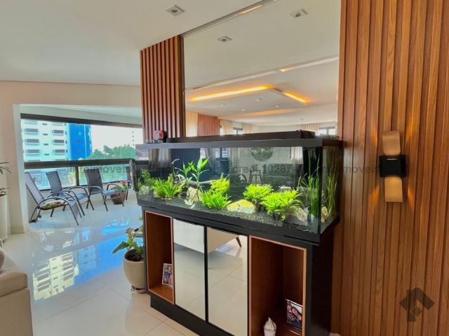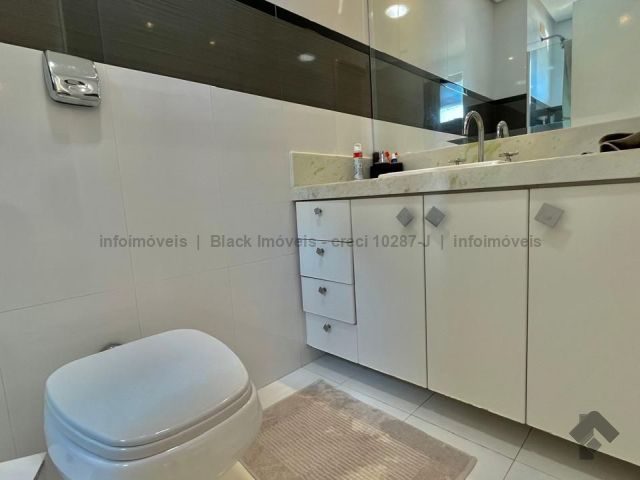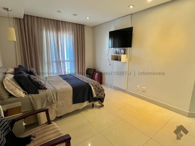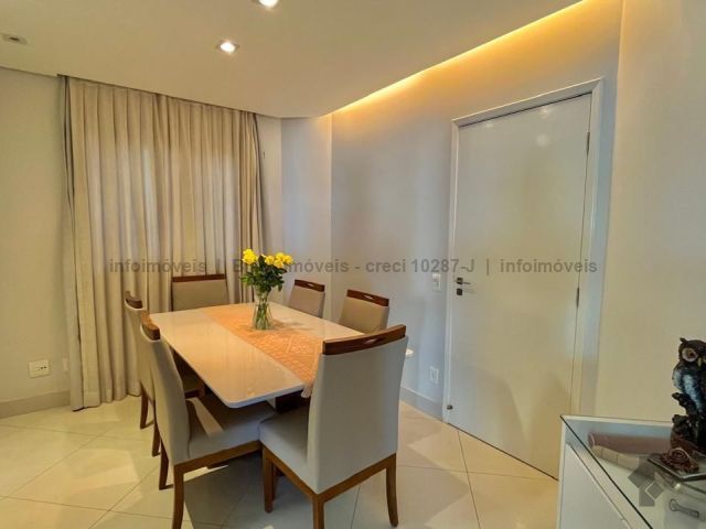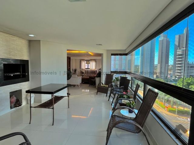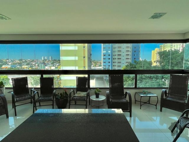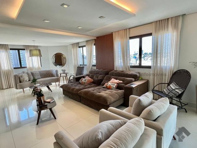 Apartamento dispõe de sala de estar, sala de jantar lavabo, quatro suítes sendo uma master, copa, cozinha, área de serviço, quarto de funcionário e 3 vagas privativas de garagem.