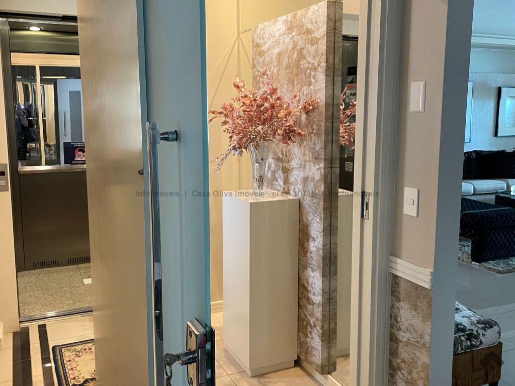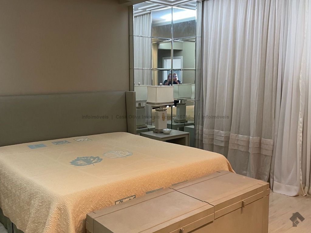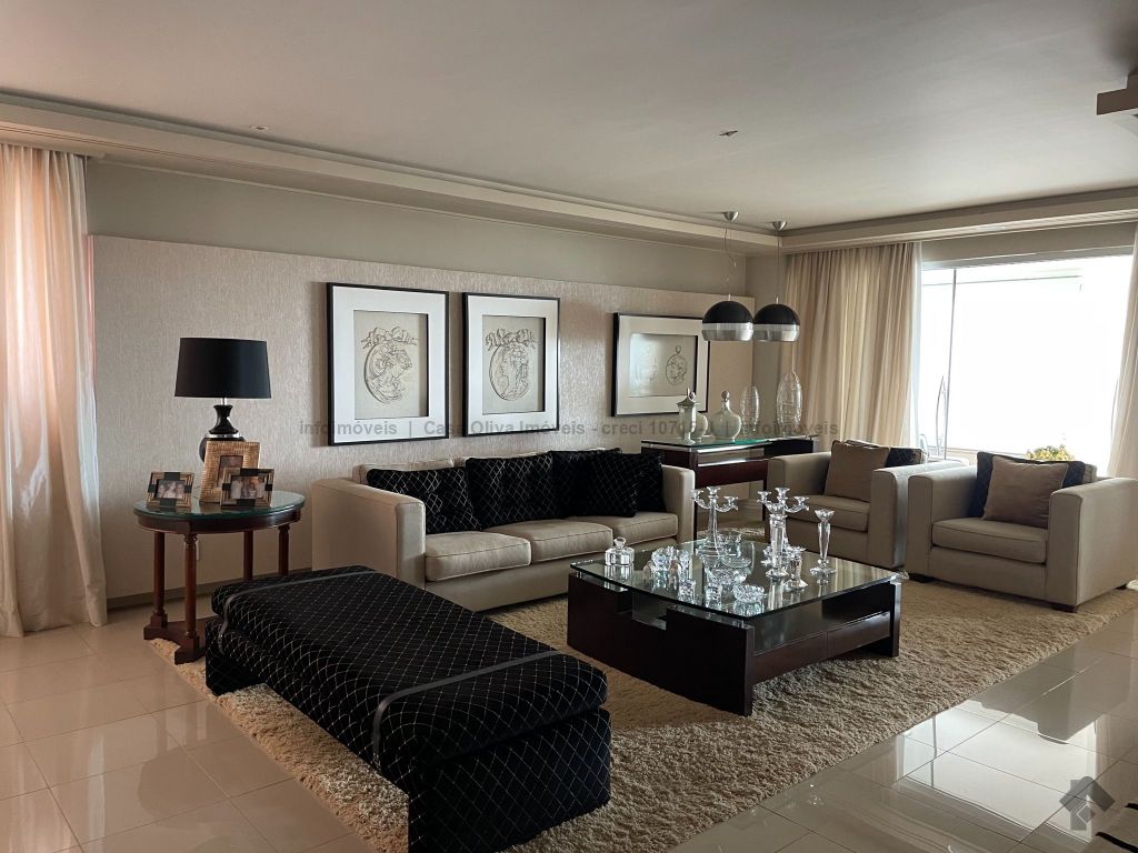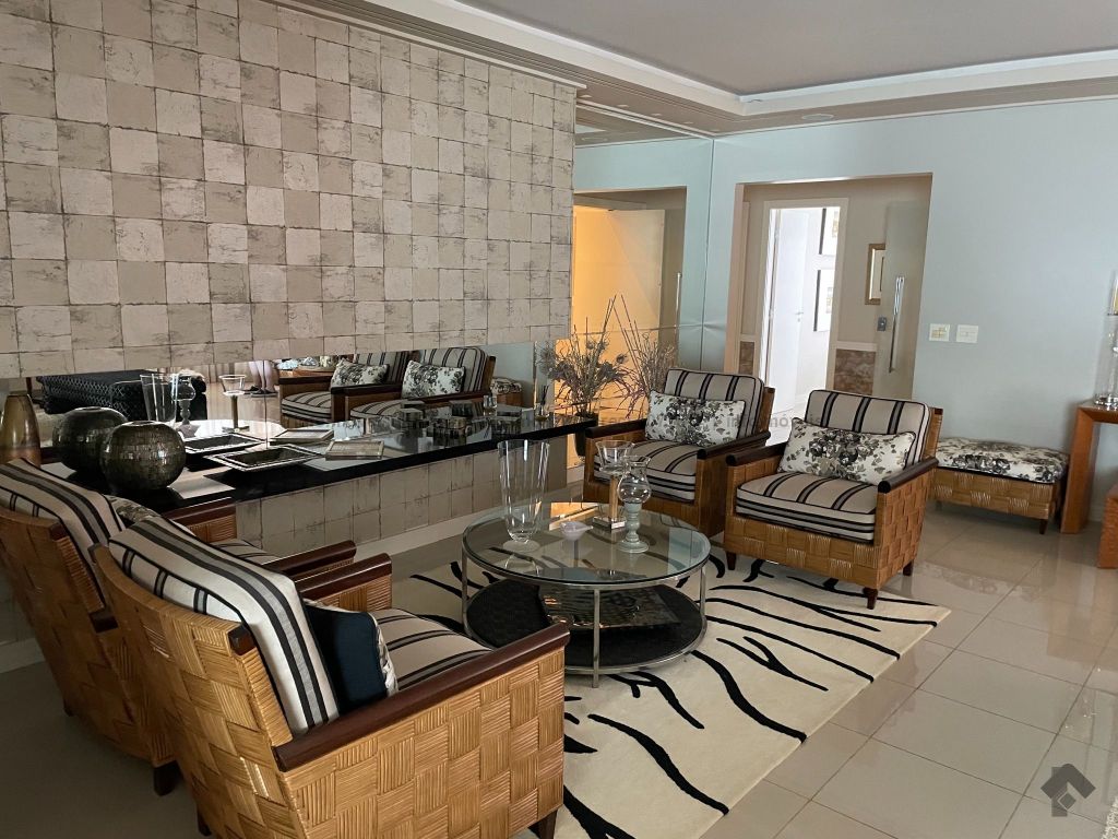 Luxuoso apartamento totalmente decorado, com armários maravilhosos, 4 suítes com armários, sala de TV interna, sala de estar com 3 ambientes, sala de jantar, sacada fechada rodeando a área do living, copa, cozinha planejada, bar com churrasqueira, área de serviço e dependência completa de empregada.