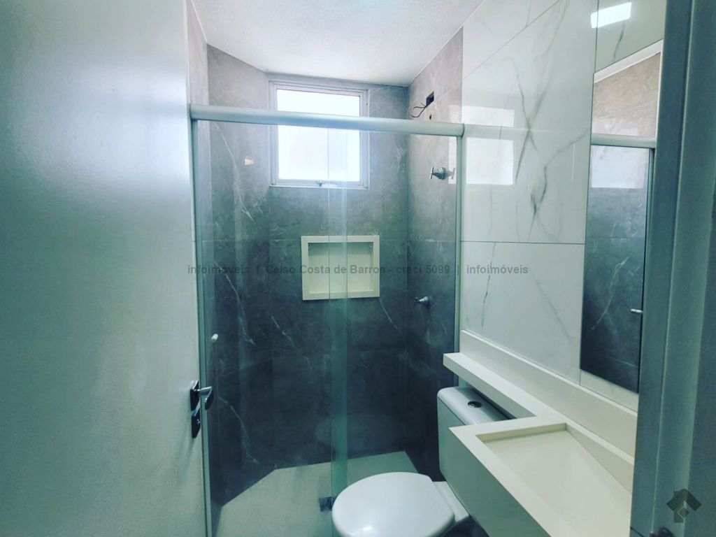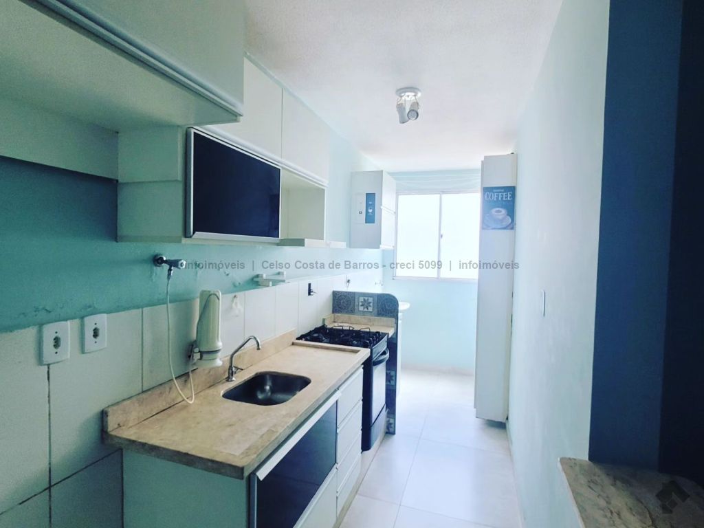 Revestimento em porcelanato, cozinha com armários, ar condicionado.