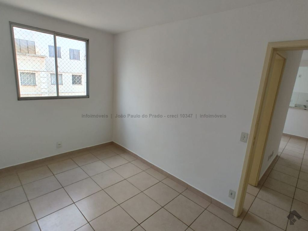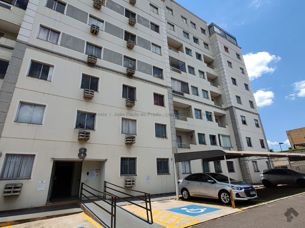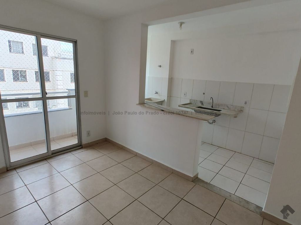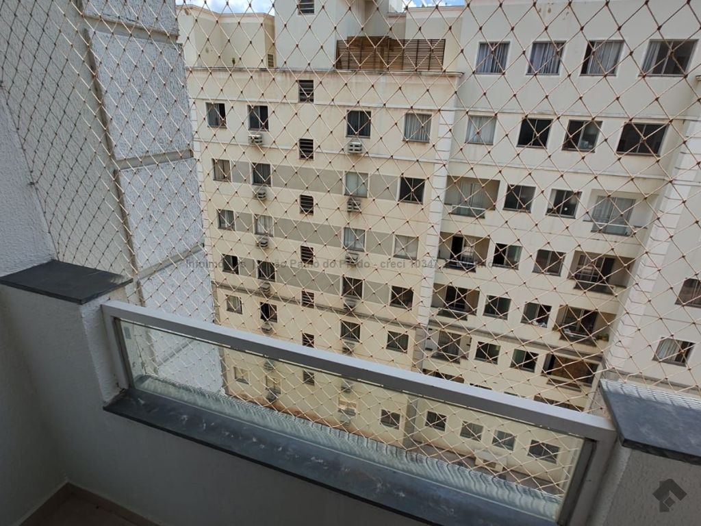Sala com varanda, 2 quartos, hall de circulação, banheiro social, cozinha conjugada com a área de serviço e 1 vaga de garagem coberta (toldo).