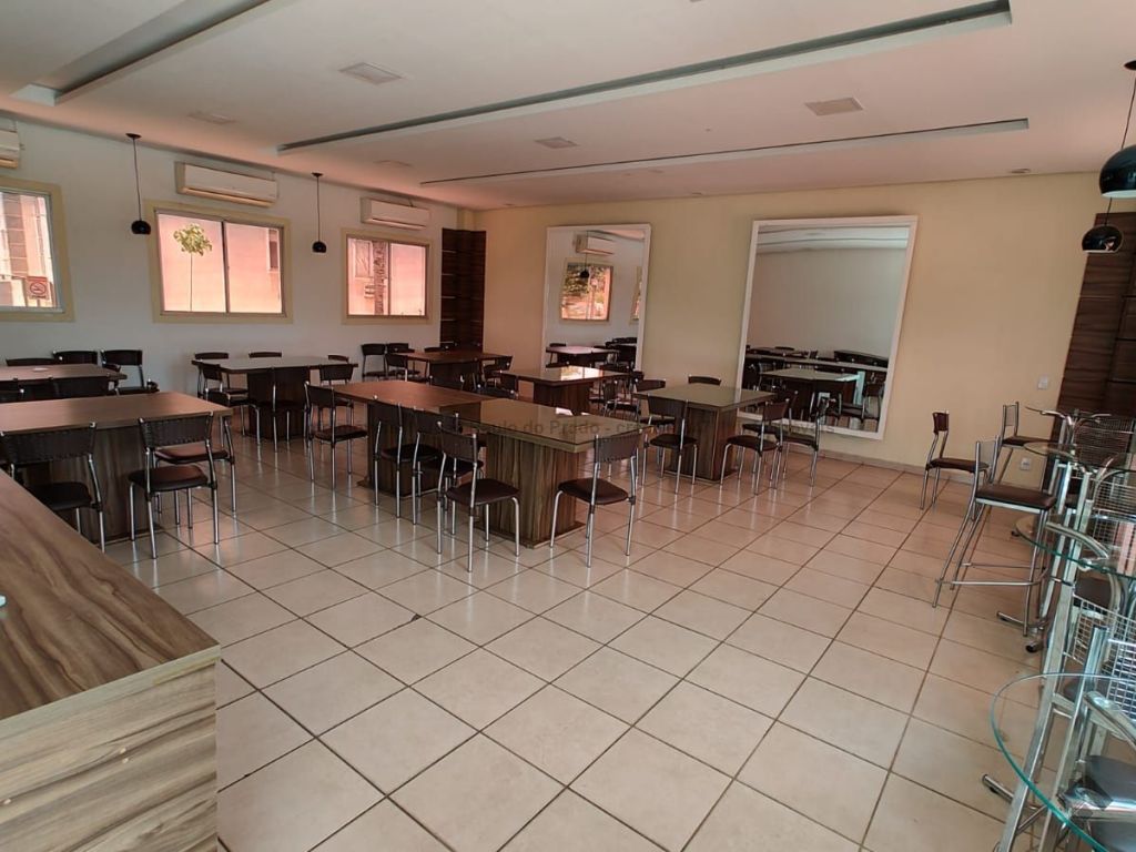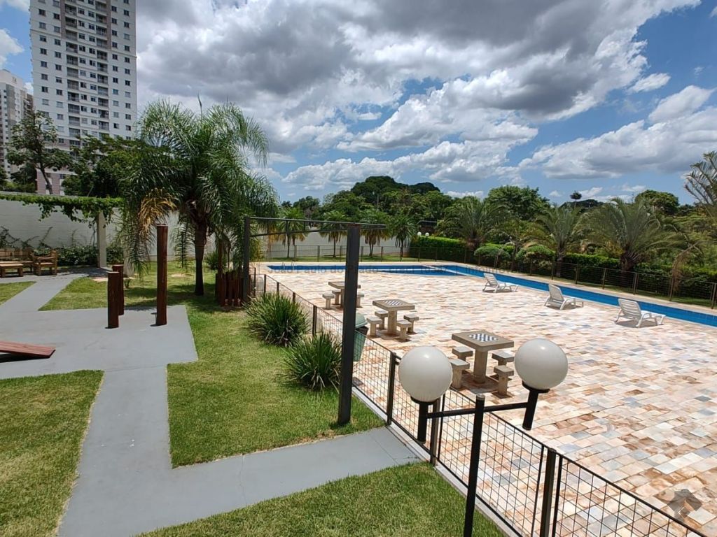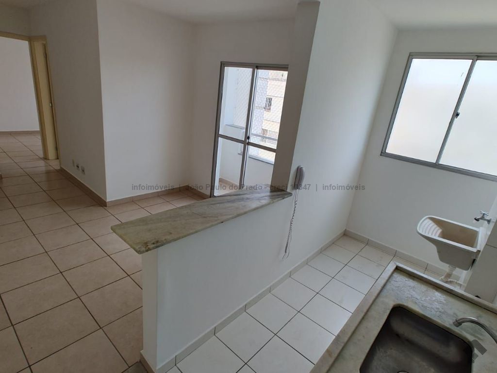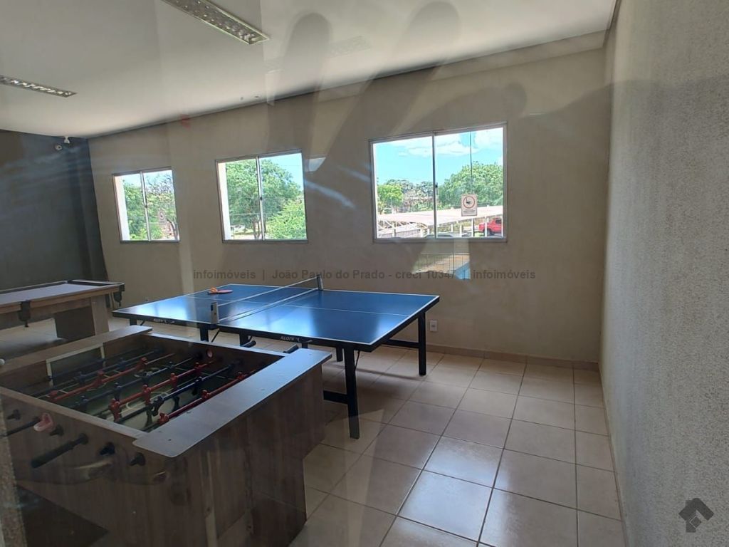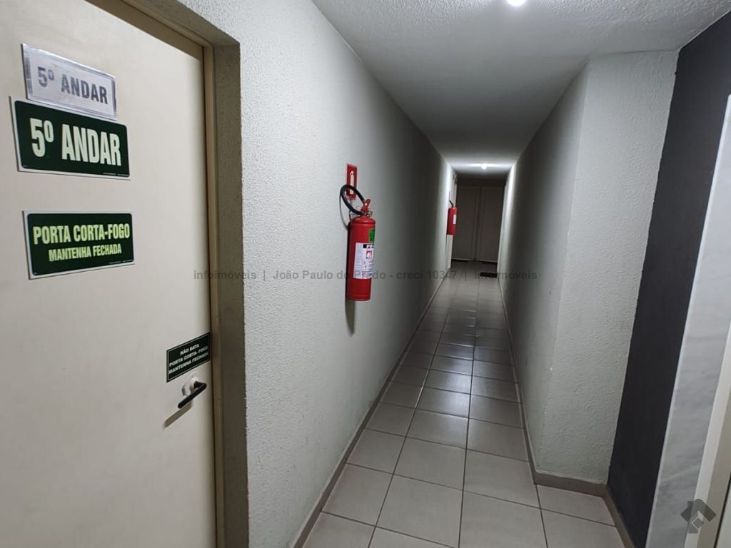 Sala com varanda, 2 quartos, hall de circulação, banheiro social, cozinha conjugada com a área de serviço e 1 vaga de garagem coberta (toldo).