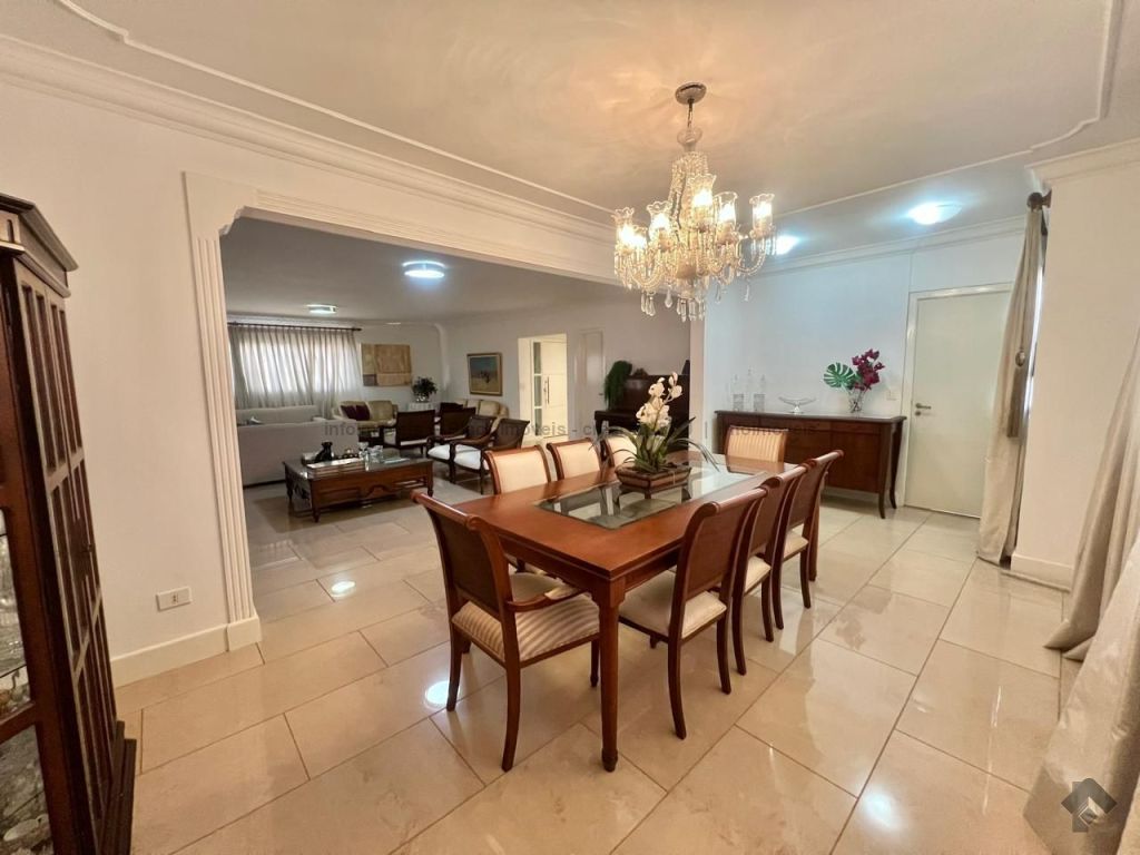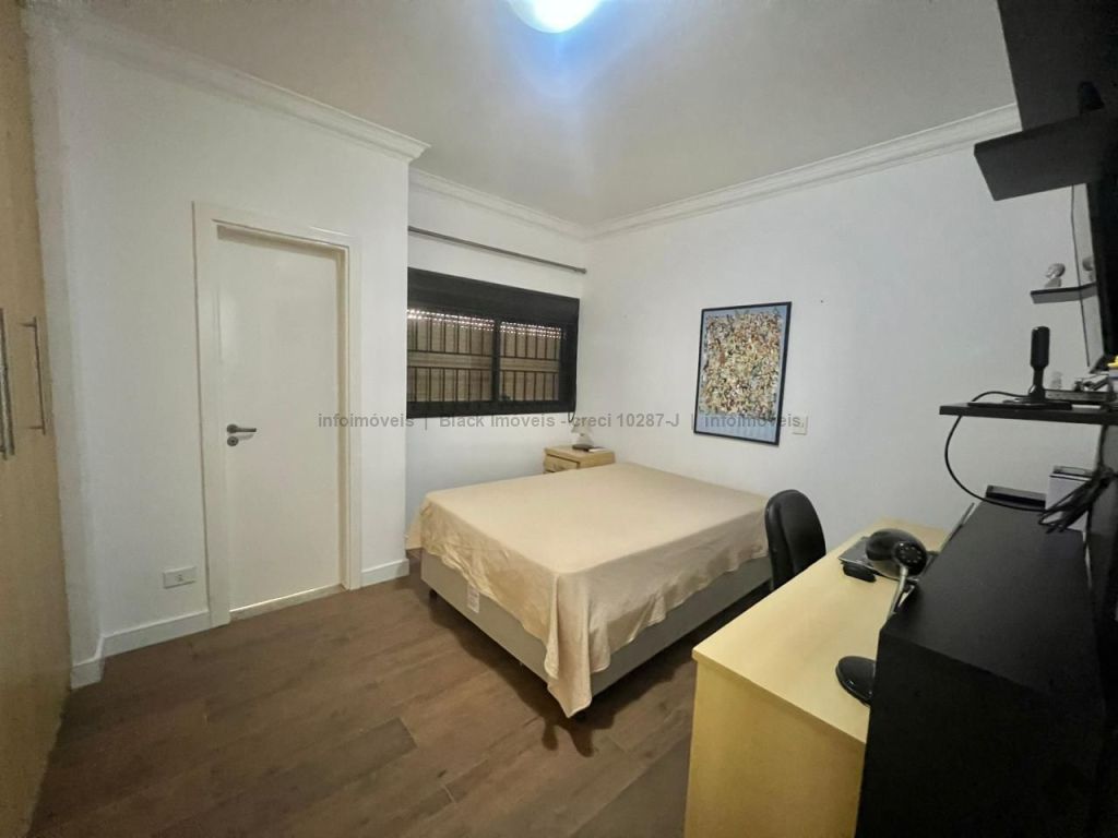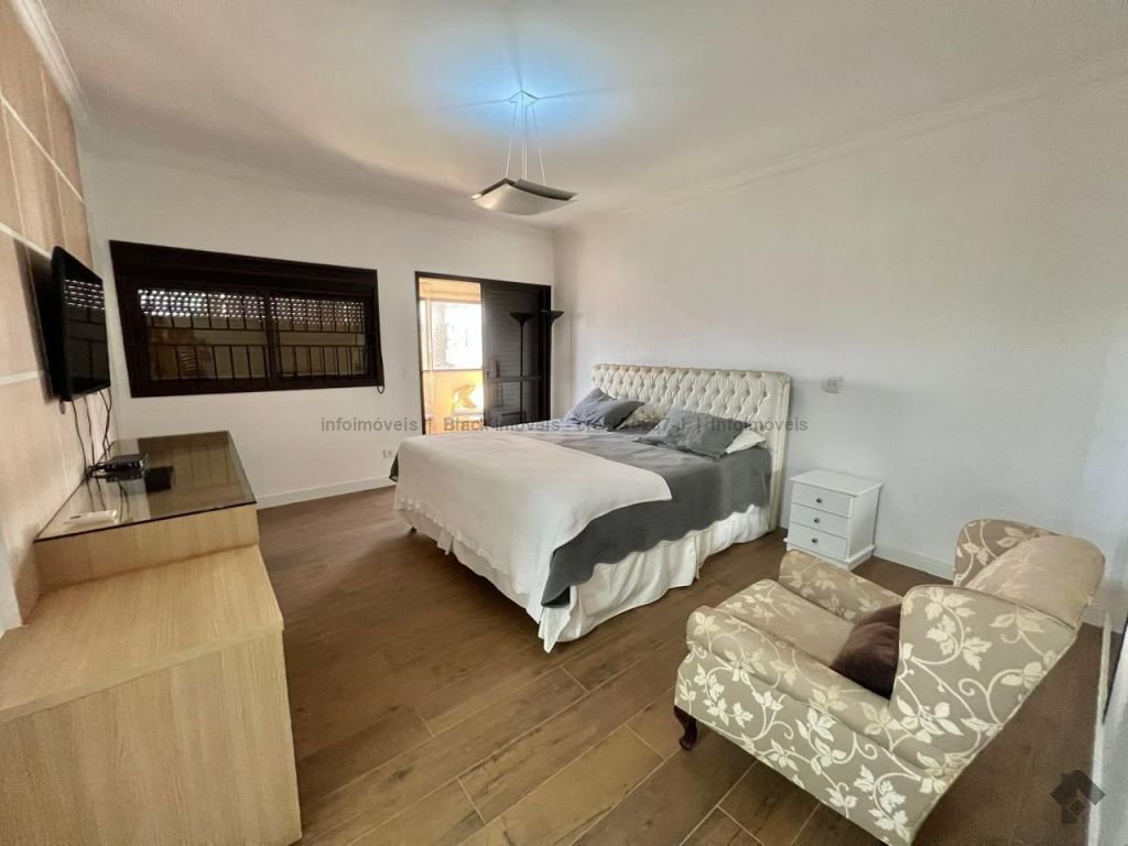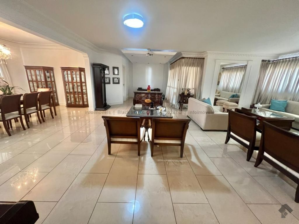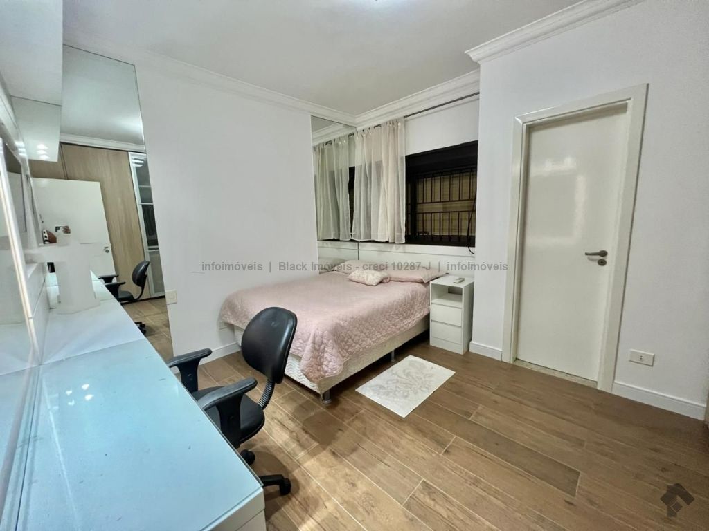 Sala para quatro ambientes, sala de jantar, escritório, varanda gourmet, lavabo, sala de TV, suíte master com closet, varanda e WC com cuba dupla, três suítes, cozinha com sala de almoço, despensa, área de serviço, quarto de serviço, WC de serviço. Três garagens independentes e box. Edifício com hall de entrada, salão de festas com dois WCs, freezer e cozinha com fogão industrial, academia, piscina com bar molhado, piscina infantil, espaço gourmet com churrasqueira, dois WCs na piscina, sauna e sala de bem-estar, sistema de segurança com circuito interno, cerca elétrica e portaria física 24 horas.