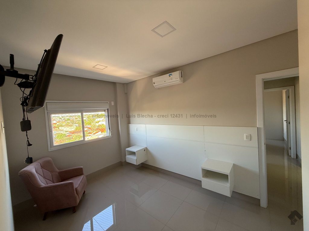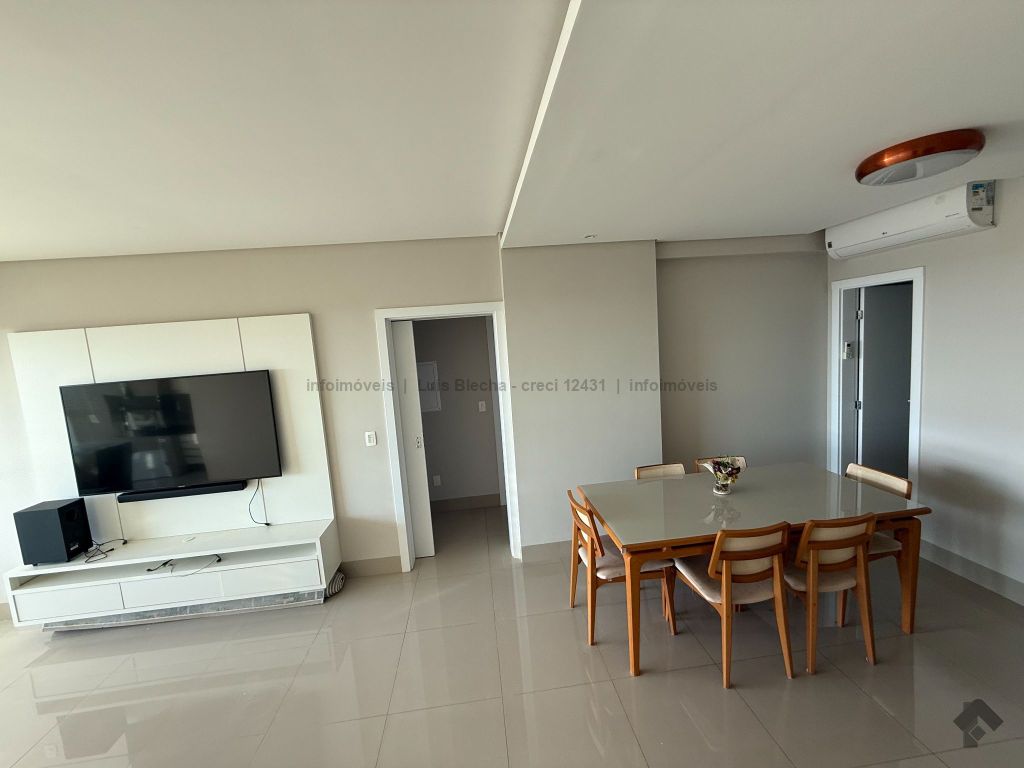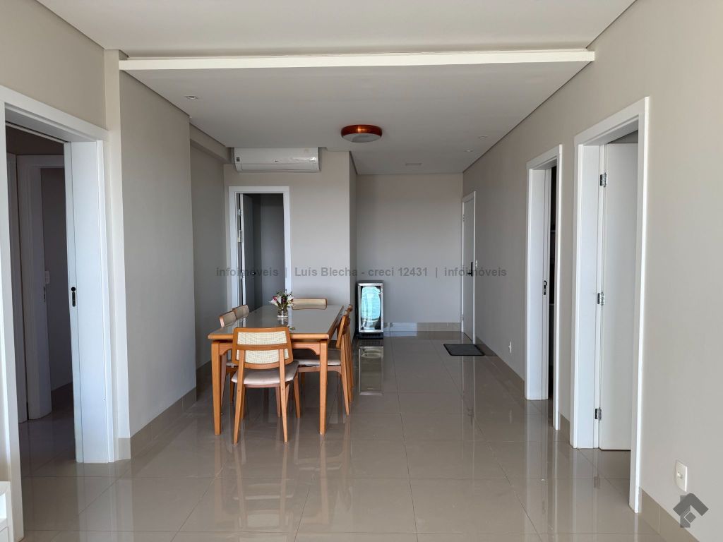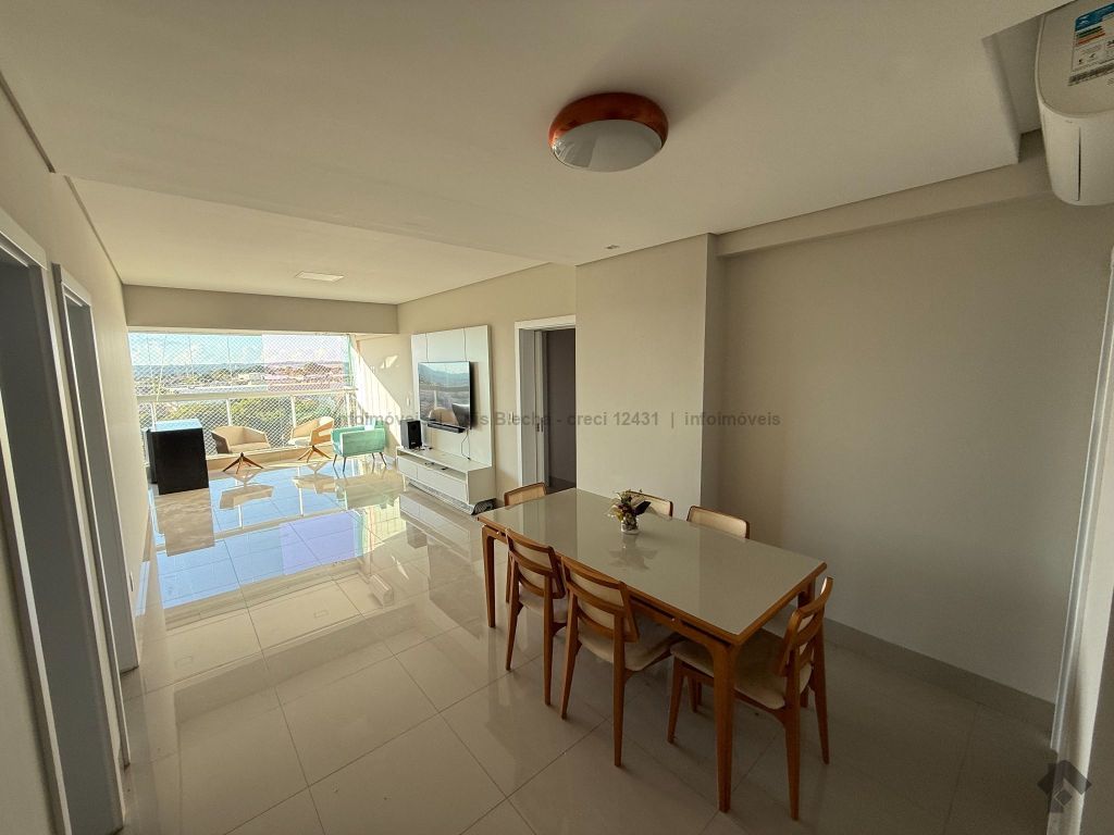 Apartamento sol nascente, semimobiliado, contendo lavabo, cozinha, sala de estar, sala de jantar, sacada com churrasqueira voltada para o sol nascente, área técnica, despensa, área de serviço com banheiro de serviço, suíte, 2 demi-suítes, box no subsolo e 3 vagas de garagem. Possui móveis planejados em todos os cômodos e 5 aparelhos de ar condicionado já instalados. Andar intermediário.