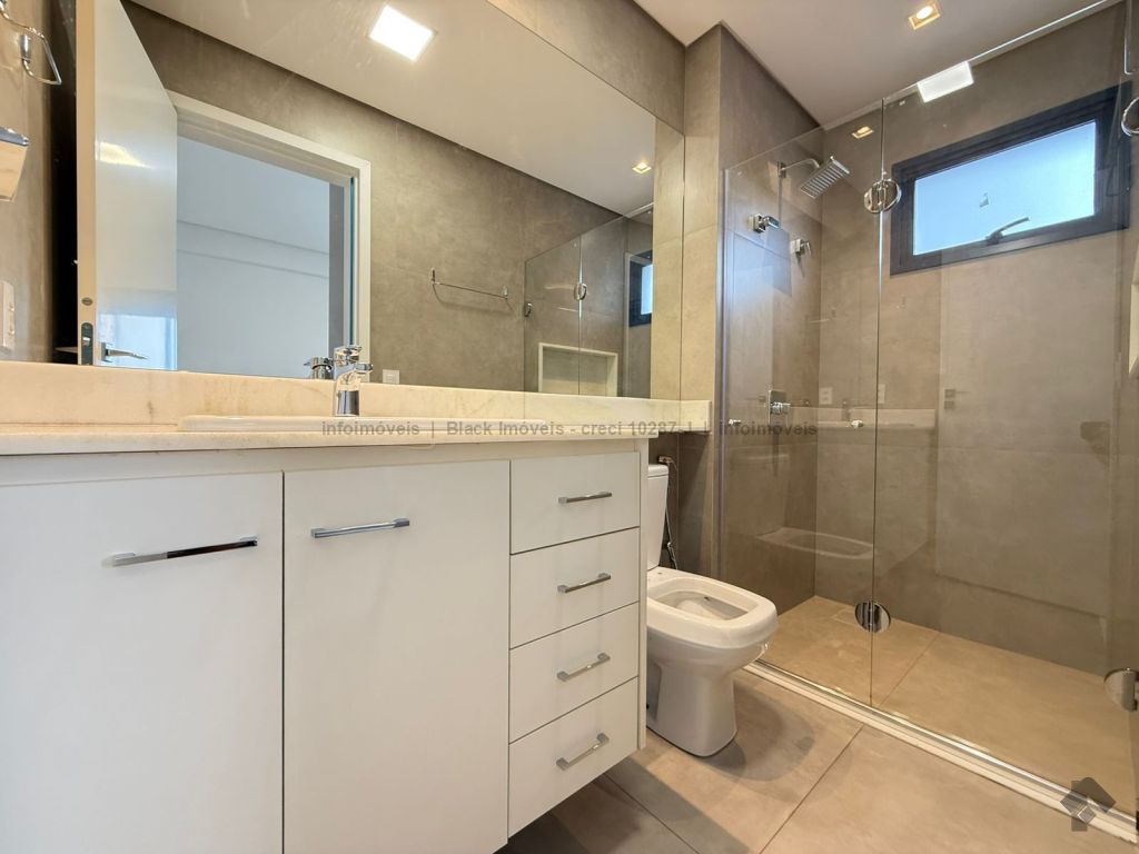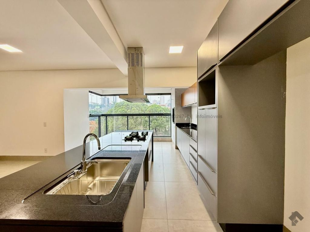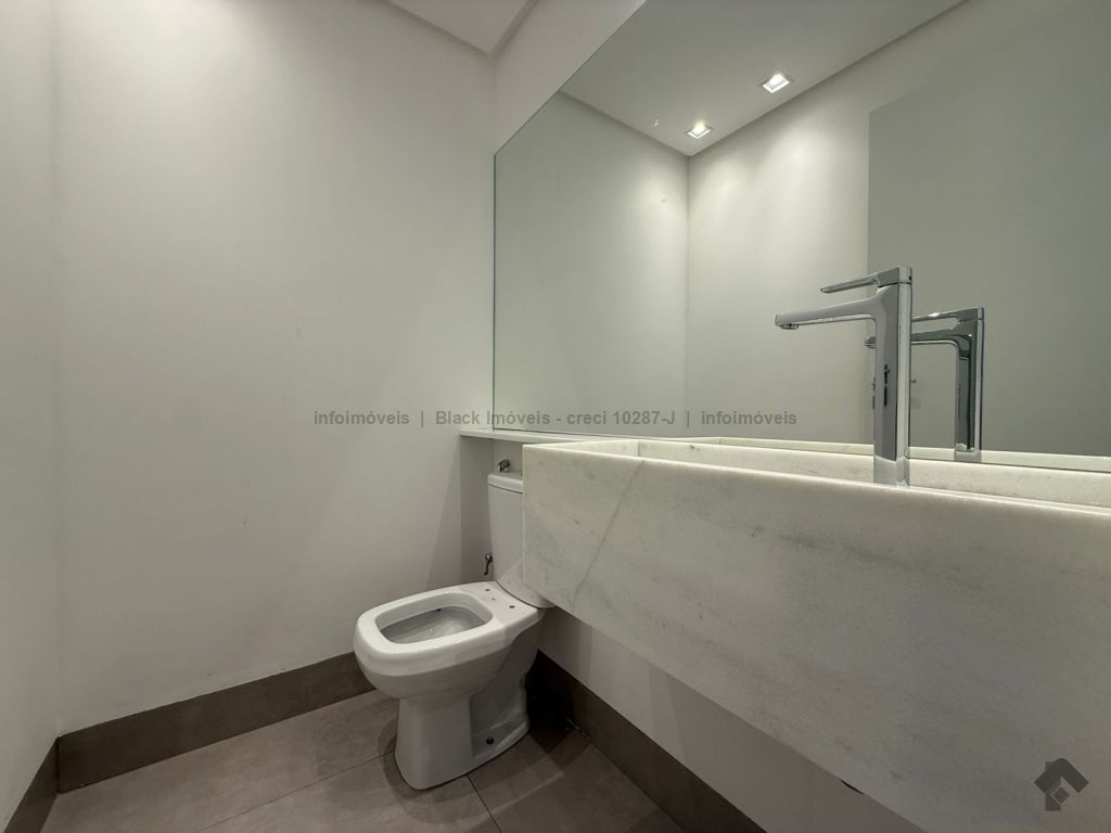 Este apartamento possui 3 suítes com móveis planejados e banheiros com acabamentos de alta qualidade. A cozinha conta com planejados, além de uma despensa e um lavabo. As áreas de estar incluem uma sala de TV e uma sala de jantar, sacada gourmet e lavabo. A área de serviço é equipada com banheiro e o imóvel conta com aquecedor a gás. Adicionalmente, o apartamento oferece duas vagas de garagem, localizadas lado a lado.