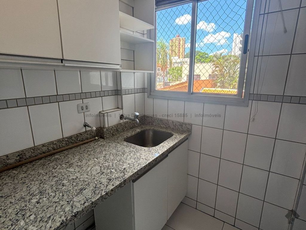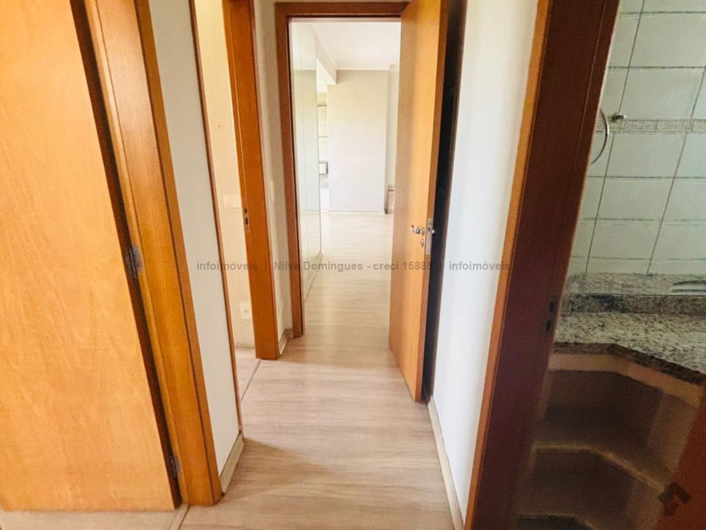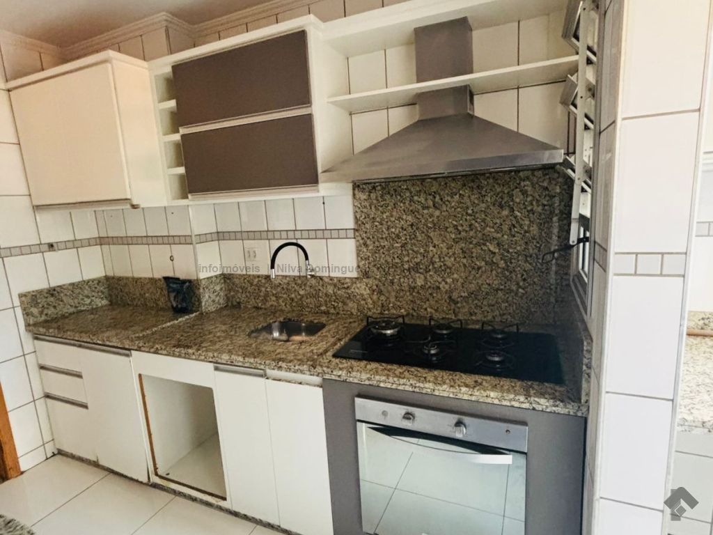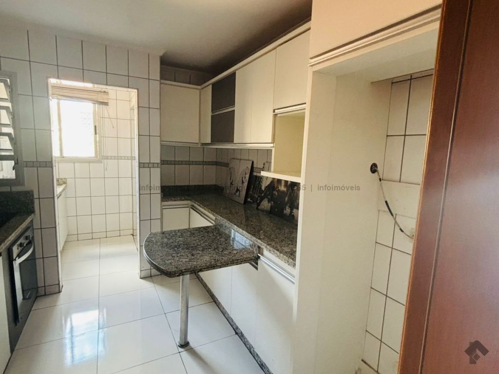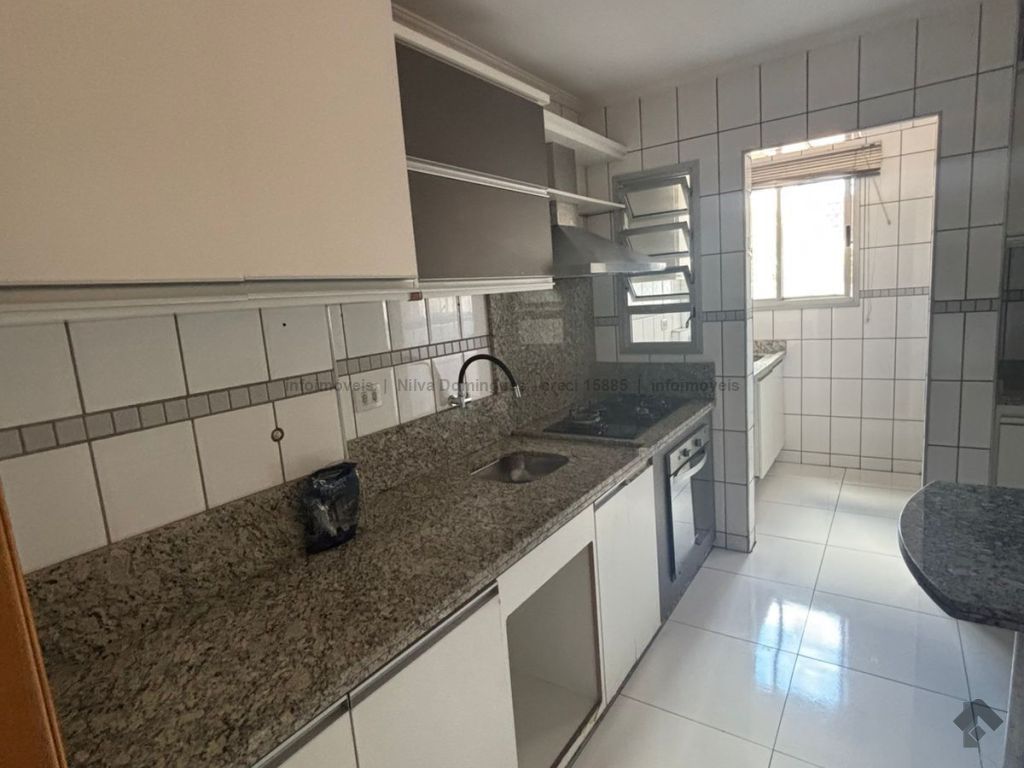 Apartamento de 88 m², rico em armários planejados. Descrição: sala para dois ambientes, sacada, cozinha com coifa, cooktop e forno, lavanderia, despensa, três quartos, sendo uma suíte, banheiro social, quatro aparelhos de ar condicionado, garagem para dois carros.
