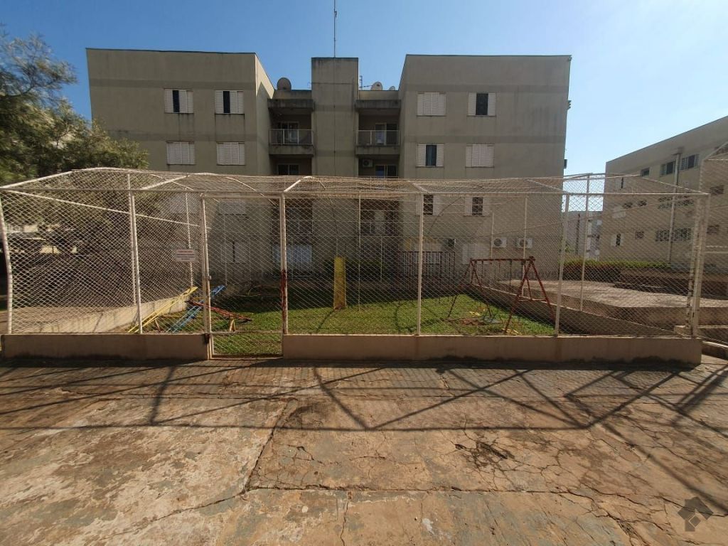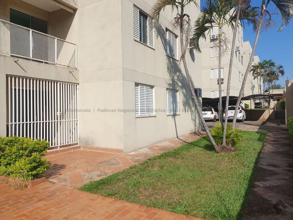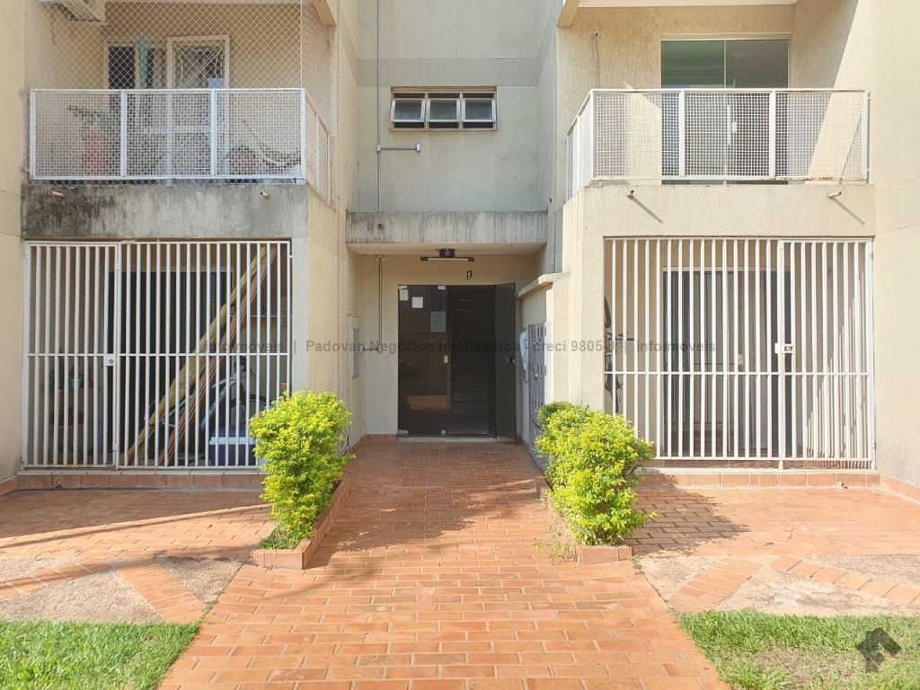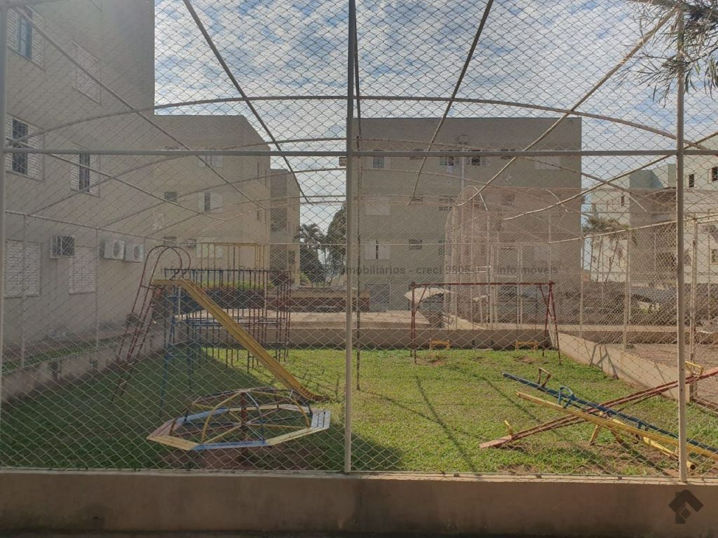 Apartamento térreo com sala 02 ambientes, sacada, três dormitórios, banheiro social, cozinha, área de serviço, 1 vaga de garagem coberta. Não possui armários planejados nos ambientes. O condomínio oferece playground, salão de festas e uma quadra poliesportiva.