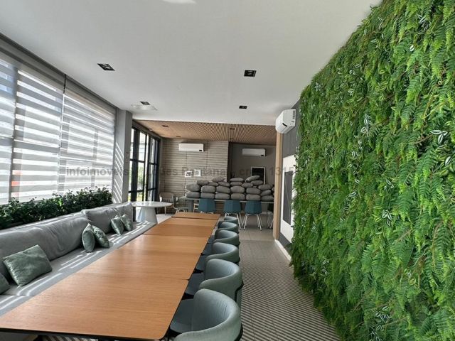 Apartamento novo, andar baixo, posição nascente, sala com dois ambientes, uma suíte e um quarto, cozinha integrada com a lavanderia, banheiro social e uma vaga de garagem. O condomínio possui área de lazer completa e equipada, além de um minimercado e o diferencial de uma piscina privativa na área gourmet.