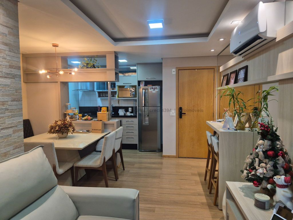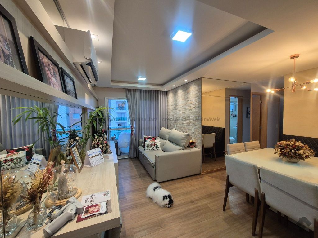 Lindo apartamento, projetado com requinte e delicadeza aos mínimos detalhes. Cada ambiente foi planejado para proporcionar conforto, com acabamentos de alta qualidade e iluminação que valoriza cada espaço. O apartamento fica no 6° andar e é composto por: 01 suíte, 02 quartos e banho social, sala para 02 ambientes, sacada com guarda-corpo em vidro e tela protetora, cozinha bem planejada e equipada com coifa, cooktop e forno embutidos, área de serviço separada com porta em vidro, 02 vagas de garagem (gaveta). Possui piso vinílico na sala e nos dormitórios e piso em porcelanato nos banheiros e na sacada. Os cômodos são finamente planejados e climatizados.